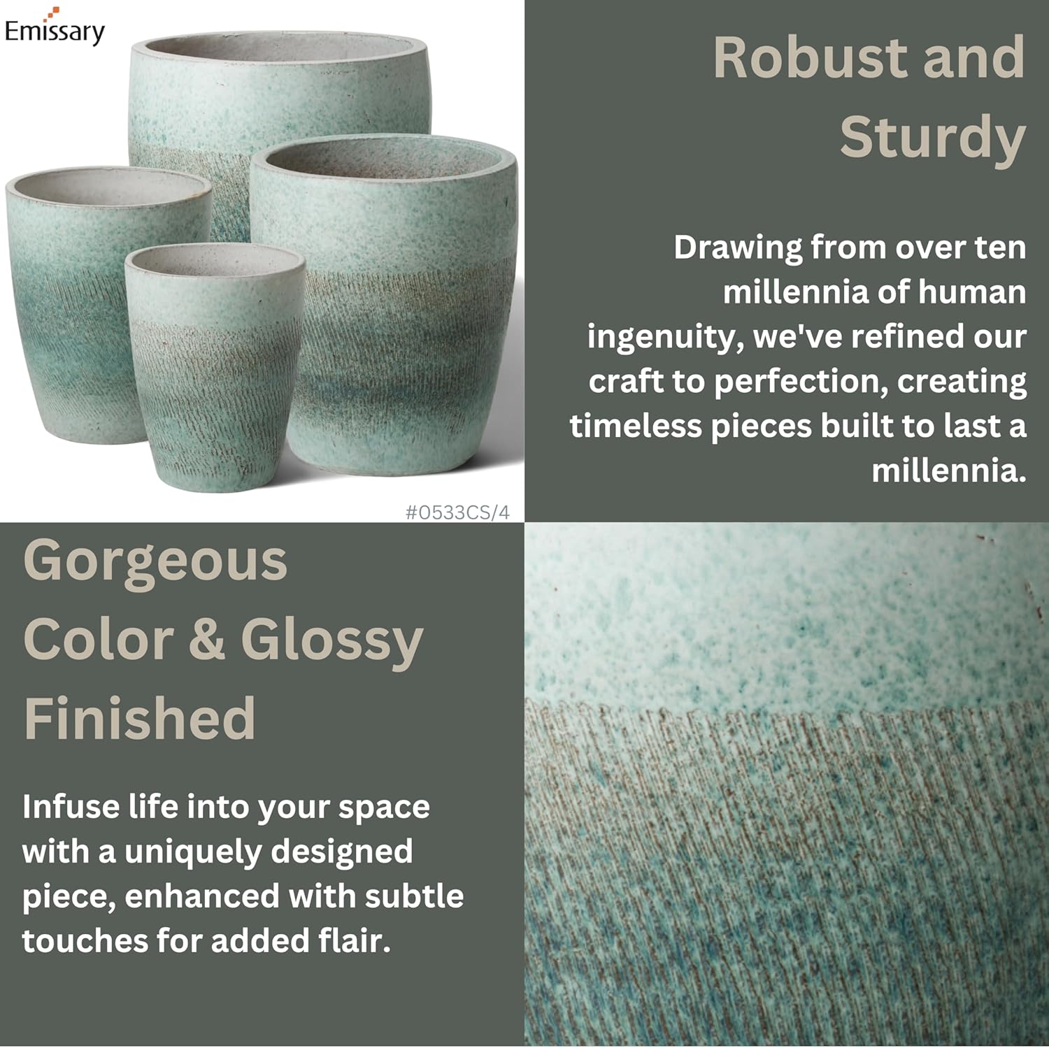 - Refreshing Coastal Splash Color with a Glossy Glaze Finish: Enhances Indoor and Outdoor Spaces with an Elegant Sophistication