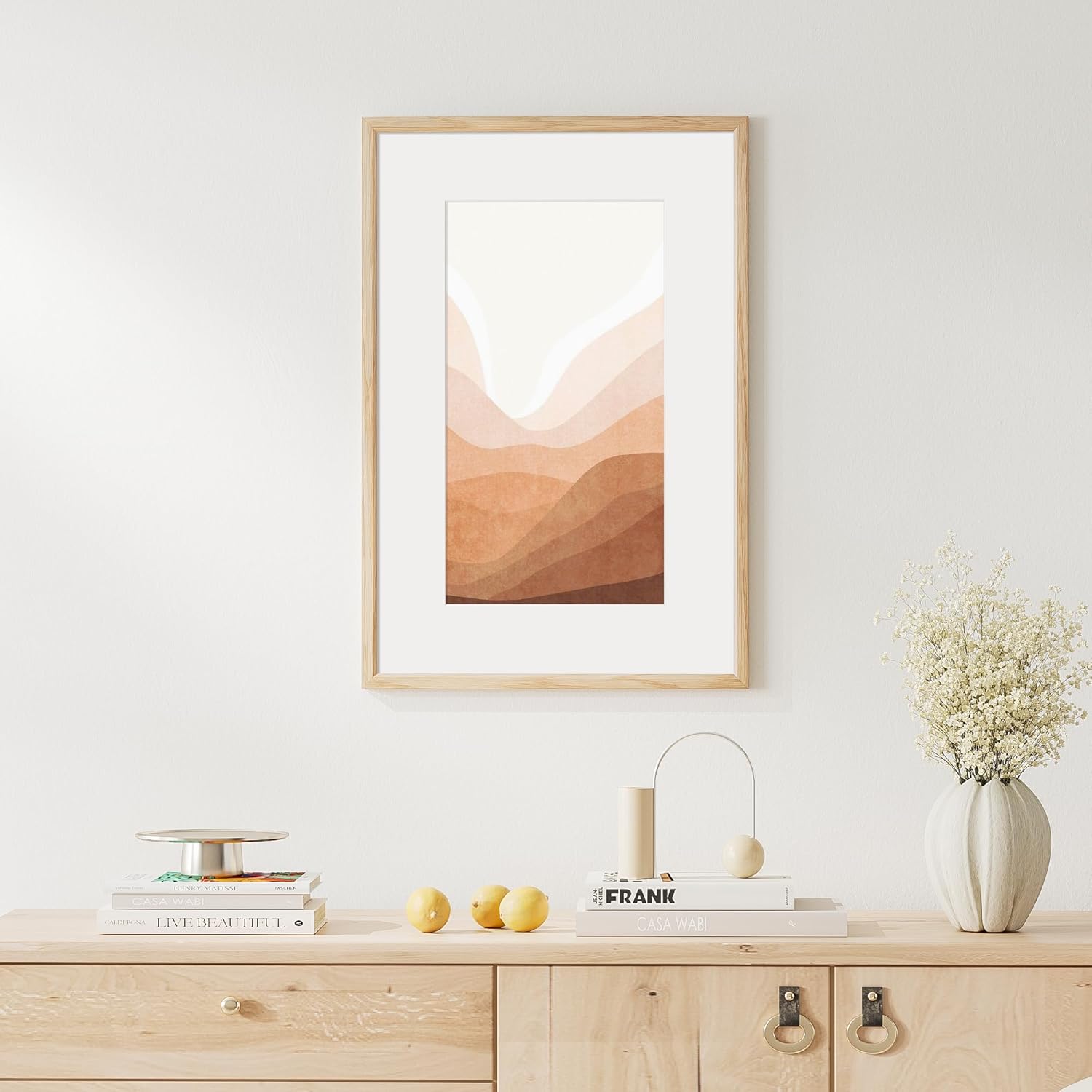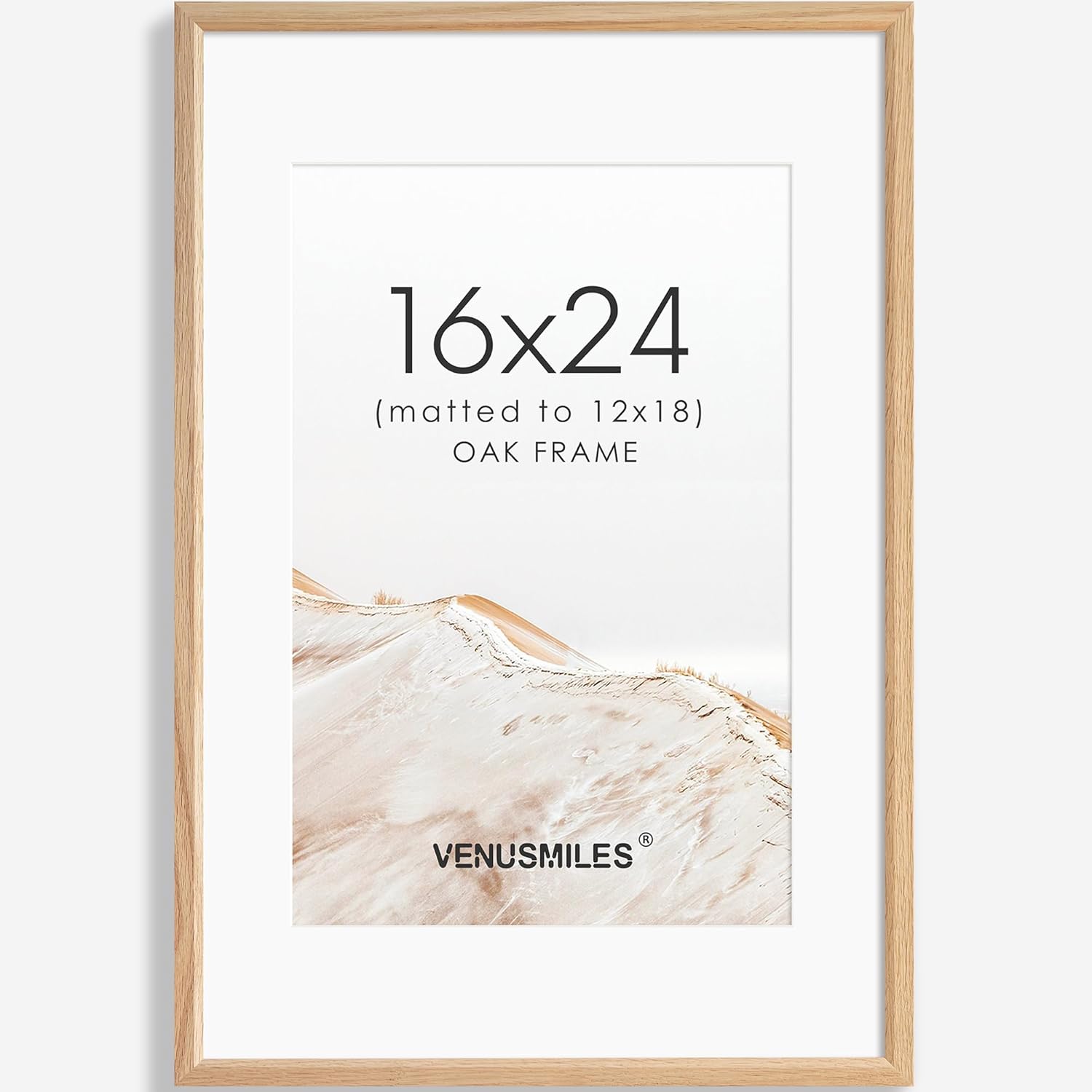 16x24 Poster Frame Natural Solid Oak Photo Frames with 12x18 Removable Mat Wall Hanging Large Handcrafted Frame with HD Plexiglass Wall and Tabletop Display Large Picture Frame