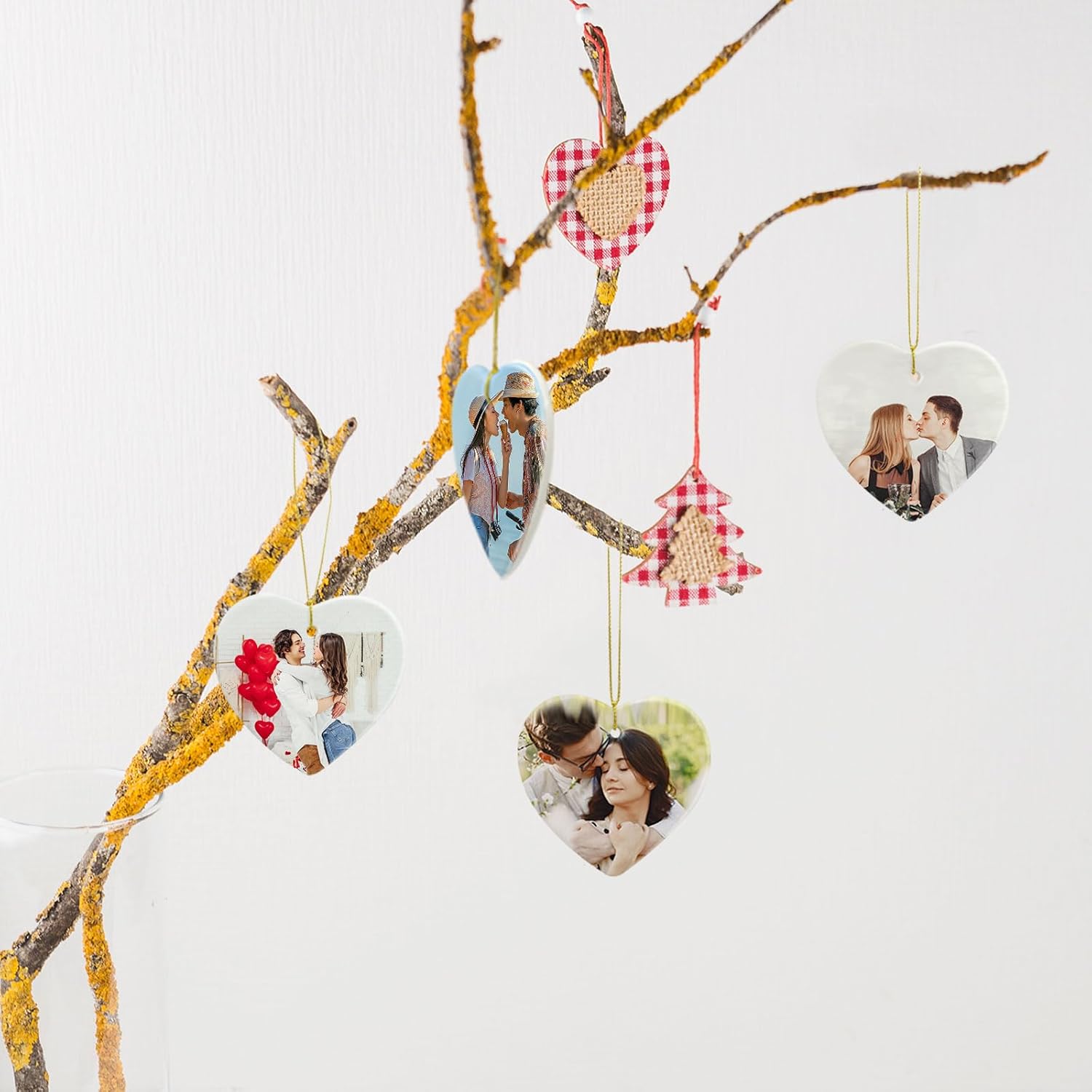 Sublimation Blank Ornaments Sublimation Ceramic Ornament Blanks Bulk Christmas Ornament for Heat Press Printing White Porcelain Ornament Personalized Decoration Supplies for Christmas(25, Heart)