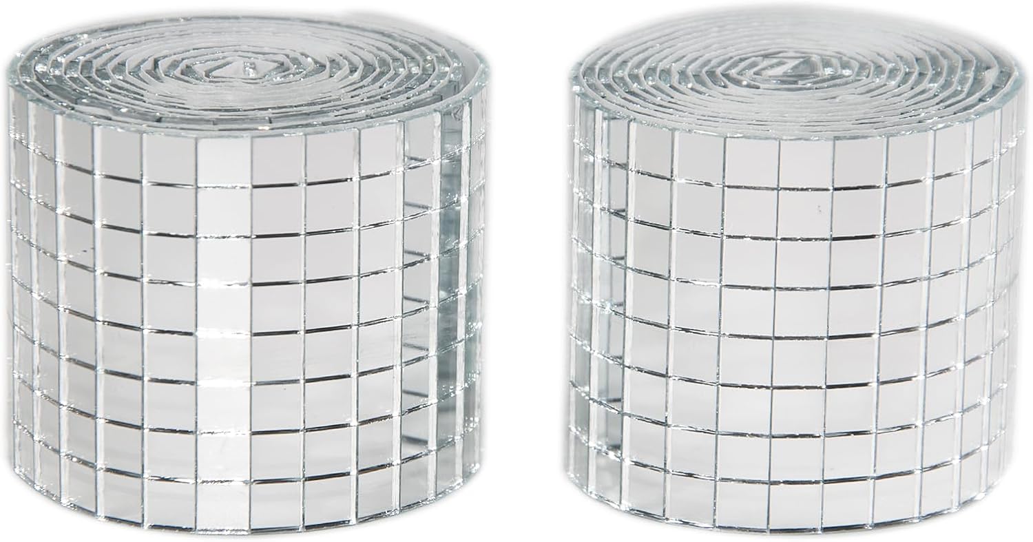 Silver Self-Adhesive Glass Mirror Mosaic Tiles, 5 x 5 mm Square Mirror Tiles, 3200 Pieces Disco Ball Tiles for DIY Craft, 2 Rolls Disco Mirror Tiles for Interior, Art Collage, Card Making, Cups