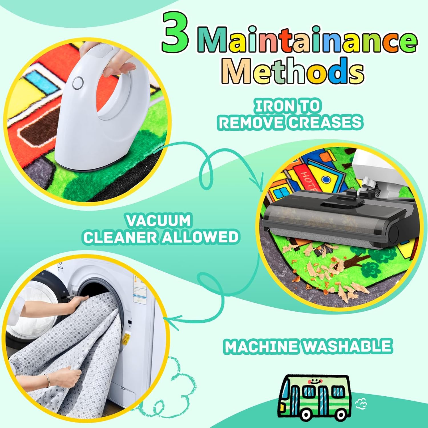 - [About Creases & Thickness]: Due to vacuum package, the road map rugs for kids may feel thinner and have wrinkles after right unpacking. Please don't worry, it will take 3 to 7 days for the kids rug to regain its original shape. You could also use a steam iron to smooth out creases caused by shipping folds.