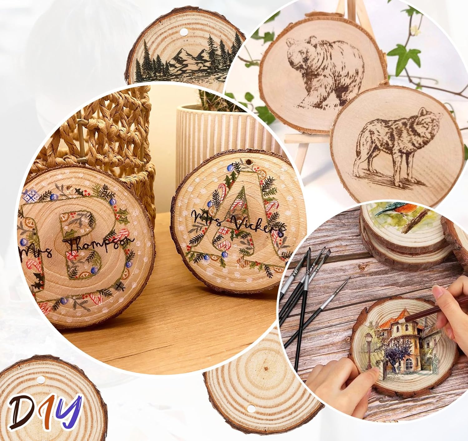 - [Wood Slices for Crafts] Unleash your creativity with these wood rounds for crafts. Ideal for making personalized coasters, door signs, gift tags, party cards, and other hanging decorations, these wood circles for crafts are a canvas for countless DIY projects that embrace natural beauty. wood circles for crafts Perfect for photo backdrops, birthday setups, wedding decor, party embellishments, Christmas ornaments, home decorations, or unique crafts for appreciation. Elevate any event or DIY project with our stunning round.