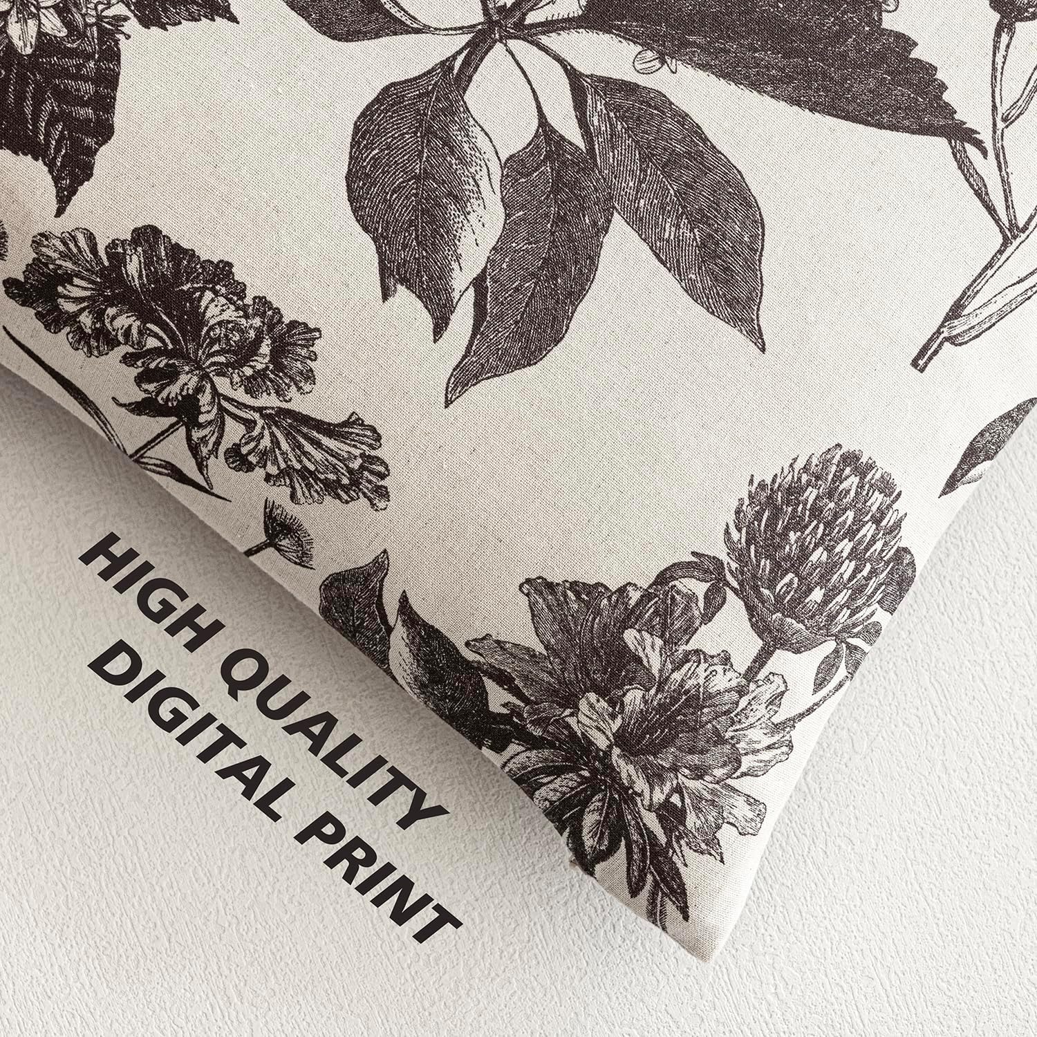 Foindtower Set of 2 Linen Floral Vintage Throw Pillow Covers Neutral Accent Print Decorative Cushion Covers Farmhouse Boho Home Decor for Sofa Chair Couch Bedroom Living Room Outdoor,22×22 Inch,Black