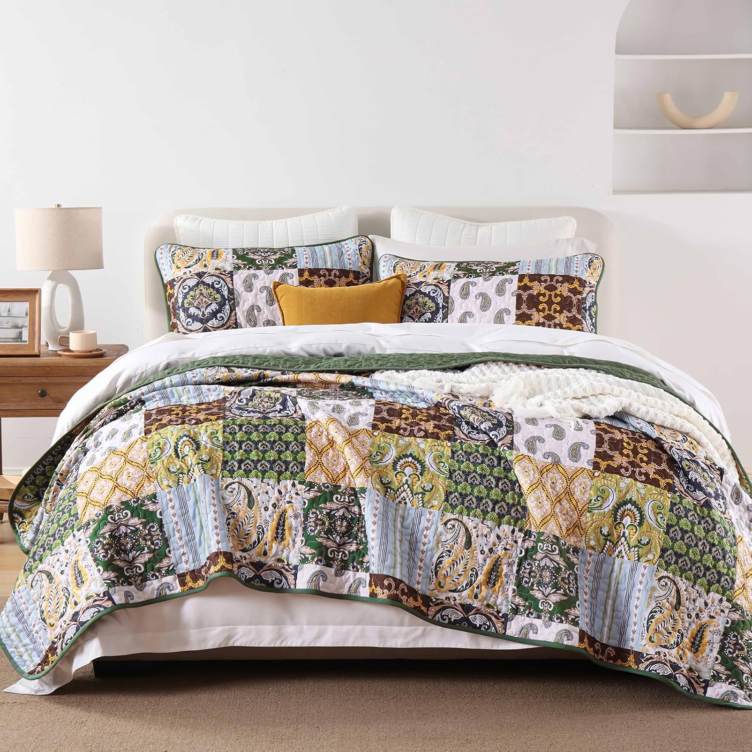 - BOHO QUILT SET: The bedspread king set features an amazing patchwork plaid design, Combined with bohemian stripe damask and paisley pattern. This quilt bedding set will effortlessly transform your bedroom into an elegant space!