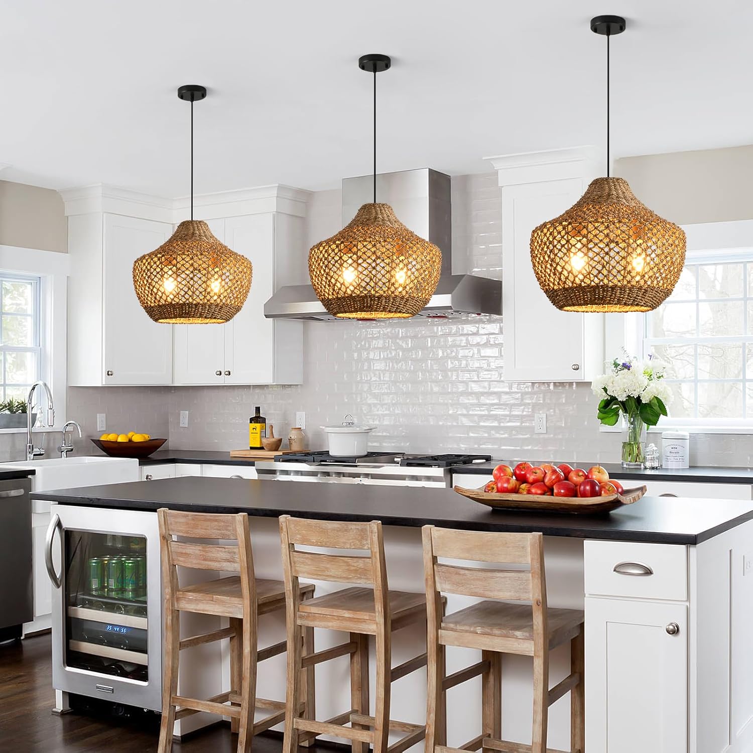 - Light bulb requirements: This rattan pendant light uses a US standard E26 lampholder up to 60W.Compatible with a wide range of E26 bulbs;LED incandescent CFL halogen (bulb not included)Wicker hand-woven pendant fixtures make it perfect for large spaces such as dining rooms and kitchen islands