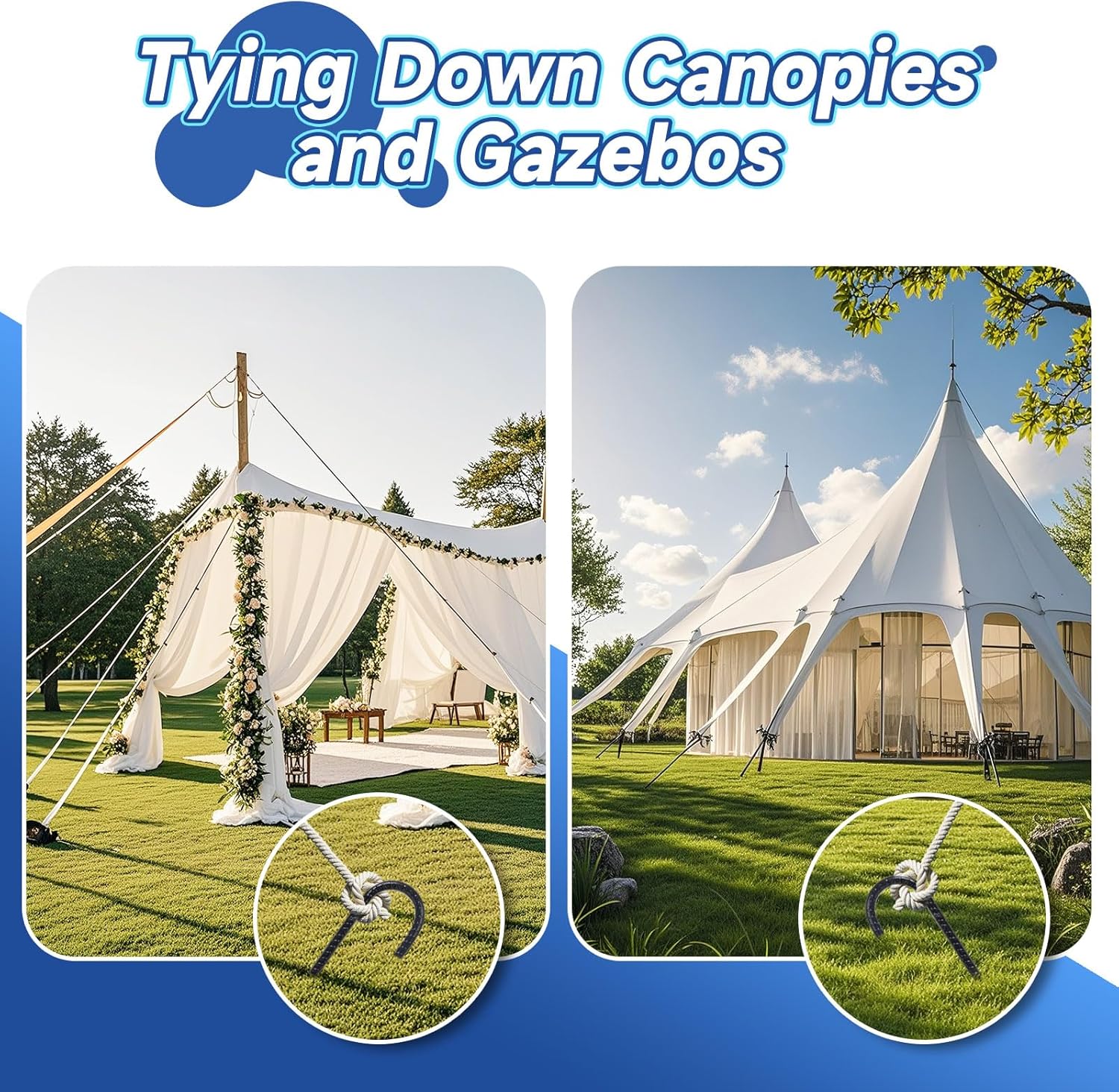 - Wide Applications - These garden stakes are strong and stout stakes for just about any type of "hold it down" application in the yard or garden. They are suitable for much more robust uses than intended purpose; such as for tent stakes, trampoline stakes and chain link fence stakes and flinging them around the yard, as well as soccer goals, lawn furniture, and other applications.