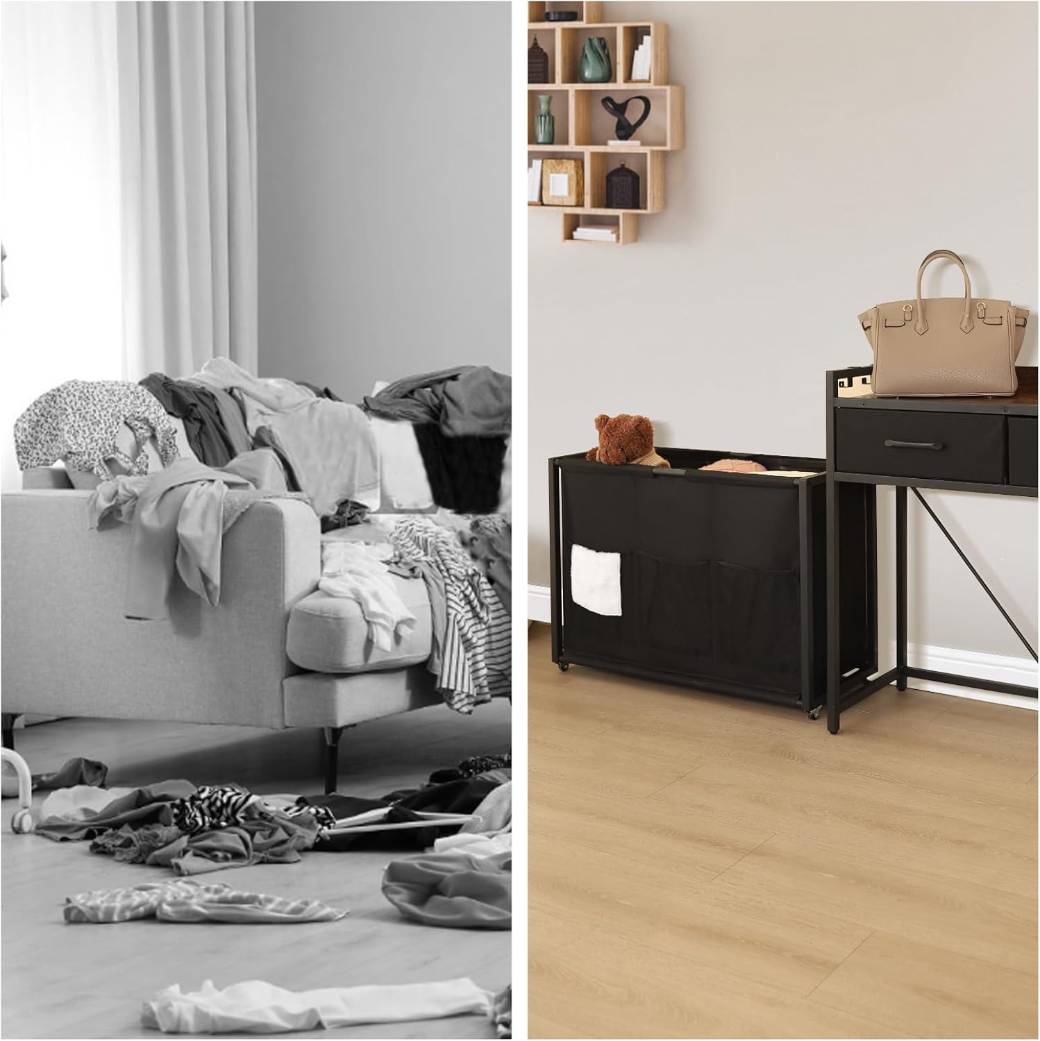 - Multi-function and save space: the multifunctional laundry basket can seamlessly into any room, whether it's your laundry room, bathroom and bedroom.It provides extra storage space, whether you need it, to help you to keep your living space clean and orderly