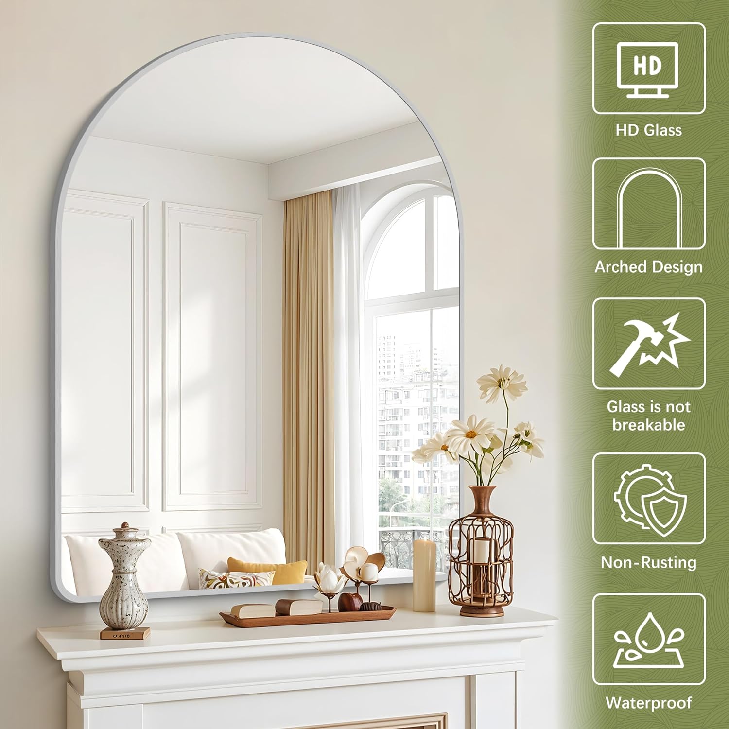 - Arched Bathroom Mirror Design: The Arched-top wall mirror makes your bathroom more elegant and classy, which especially attracts your eyes.bathroom mirrors for over sink,living room wall decor, silver arched mirror Ideal for wall mirrors decorative, silver mirror for bathroom make the space more brighter and spacious.