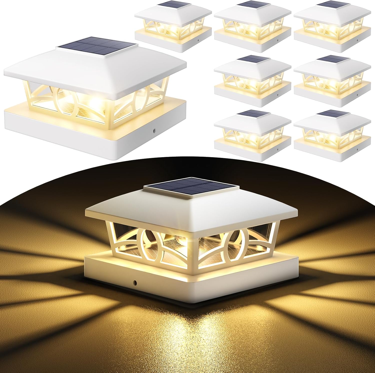 - Applicable Size & Easy Installation: NIORSUN 4x4 solar post cap lights are designed with different sizes of bases, making them compatible with standard 3.5x3.5 4x4 5x5 wood or vinyl posts. These solar deck post lights offer a hassle-free installation—no wiring required. Simply mount the solar post lights using the included mounting screws on your fence post capsNIORSUN 4x4 solar post cap lights are designed with different sizes of bases, making them compatible with standard 3.5x3.5 4x4 5x5 wood or vinyl posts. These solar deck post lights offer a hassle-free installation—no wiring required. Simply mount the solar post lights using the included mounting screws on your fence post caps