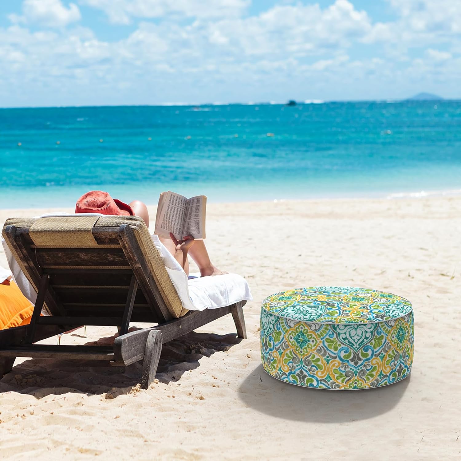 - Package Including: This bundle come with 1 pc indoor outdoor inflatable ottoman measures D21" x H9" (53 x 23cm). Made of durable and soft polyester fabric, sturdy inflatable PVC liner