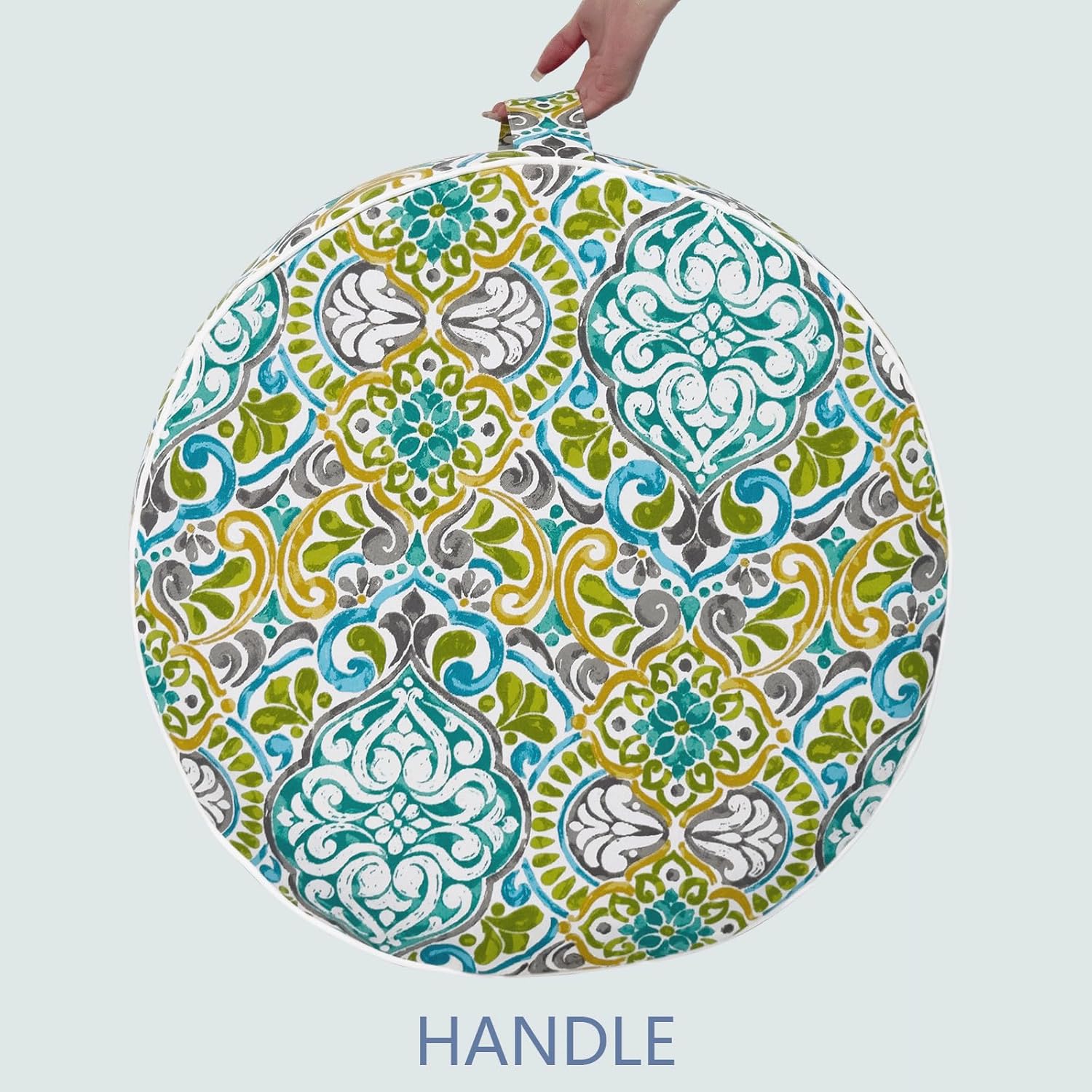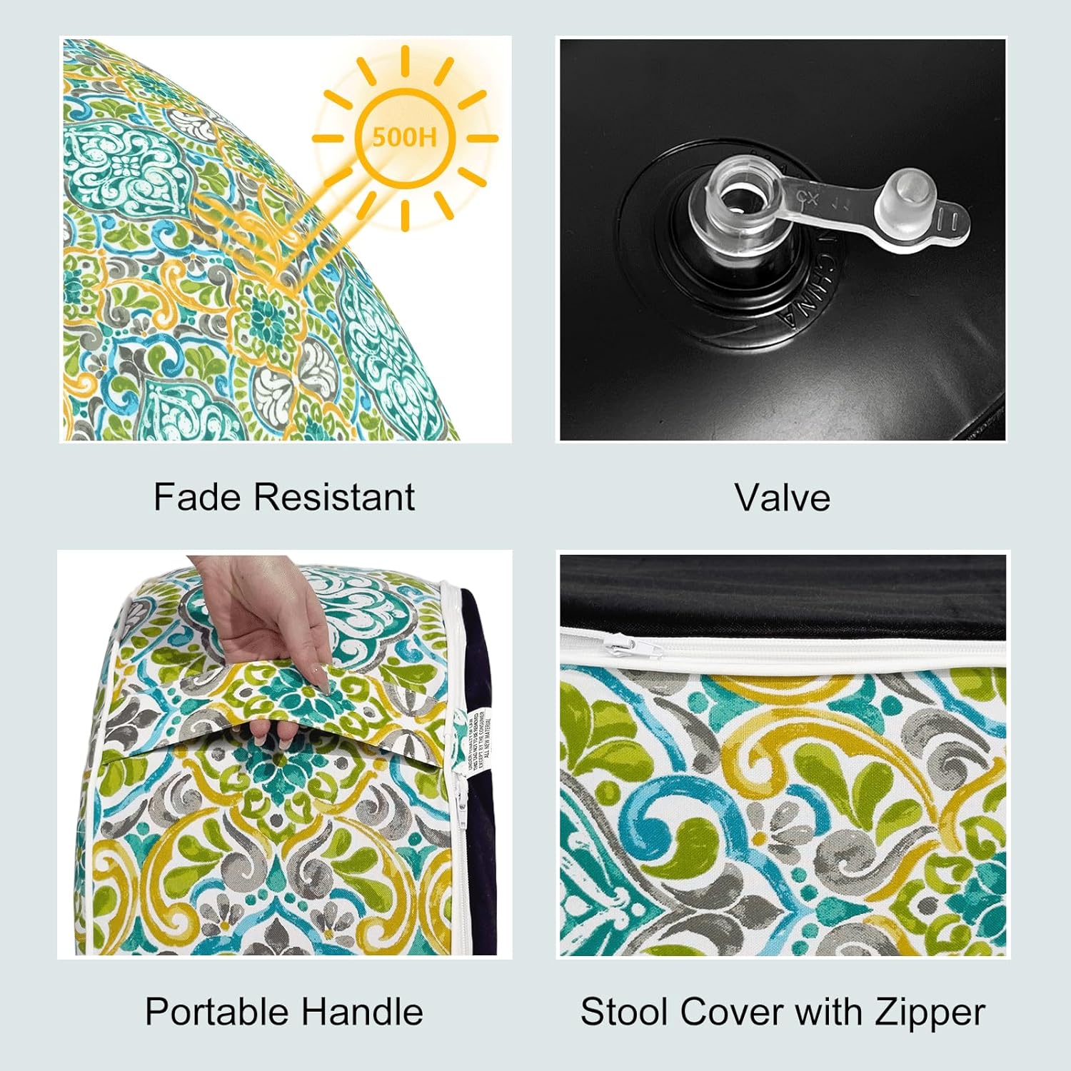LVTXIII Inflatable Stool Ottoman Footrest with Handle, All Weather Foot Rest, Indoor or Outdoor Use for Home Patio Garden and Camping, D21 x H9, Damask Green