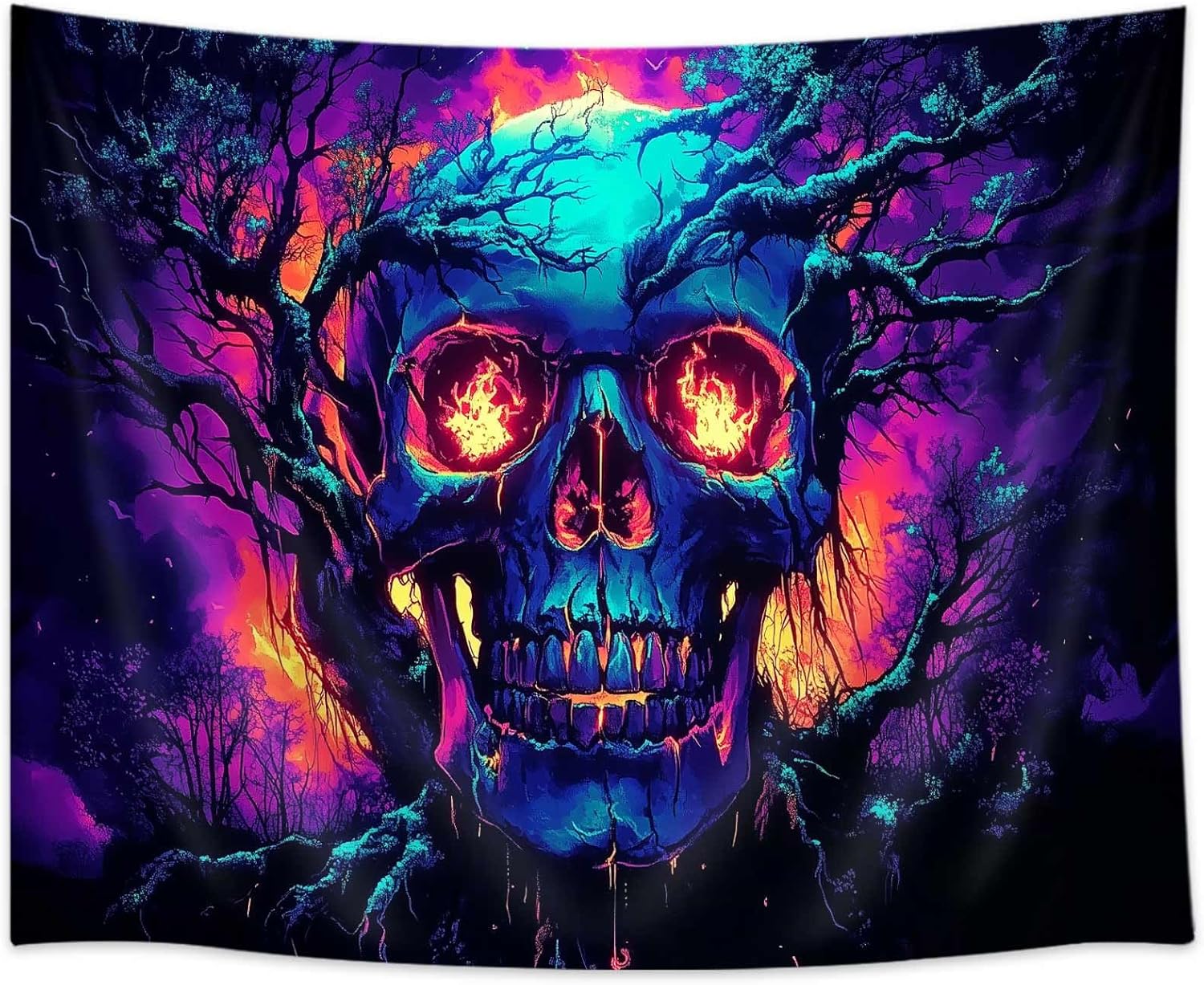 Xiaoput Blacklight Fire Skull Tapestry for Bedroom, Trippy UV Reactive Burning Skeleton Forest Wall Hanging Tapestries, Scary Dark Horror Glow in the Dark Tapestries for Living Room Home Dorm 60X40IN