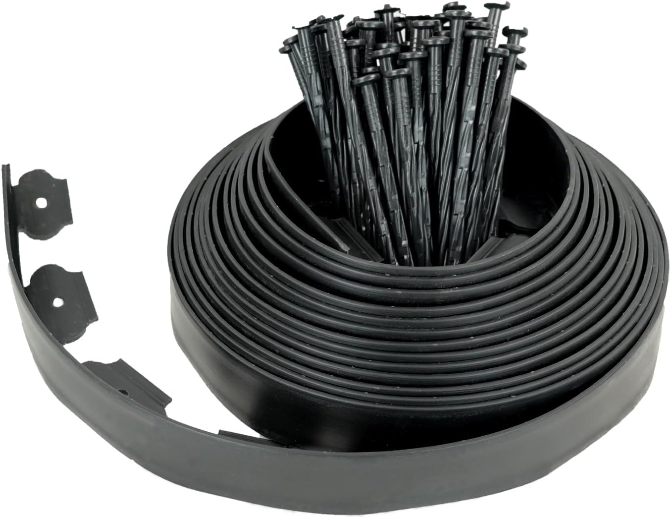 Hugeleaf Landscape Edging 2 Inches Tall, 50 Feet Garden Edging Border with 60pcs Spikes, Flexible Plastic Lawn Edge for Landscaping Flower Beds Yard Pathway