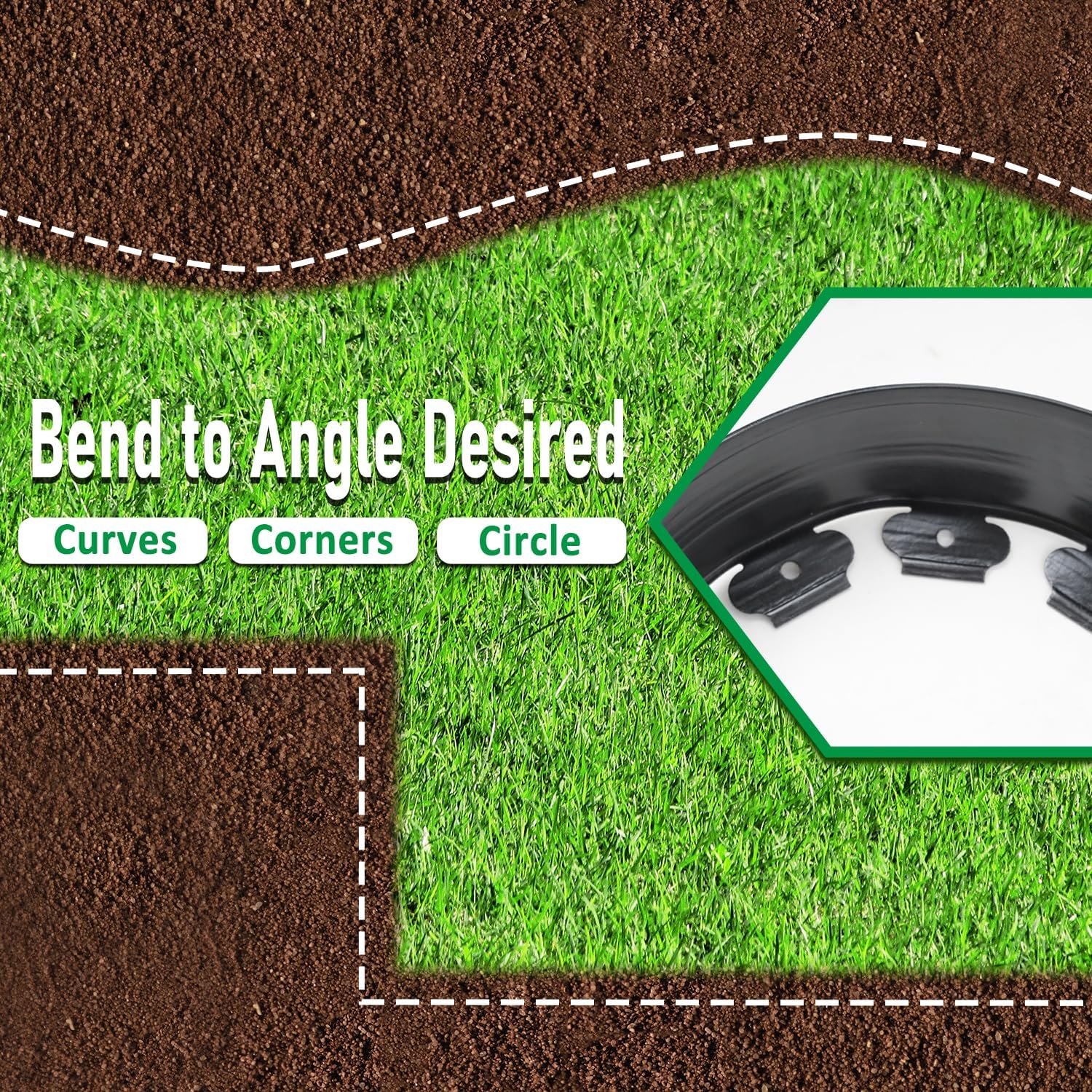 - Multiple Shapes: Garden edging offers the flexibility to design curves and rounded corners in your landscape, ensuring it won’t crack under pressure or harsh weather conditions and is reusable throughout the year