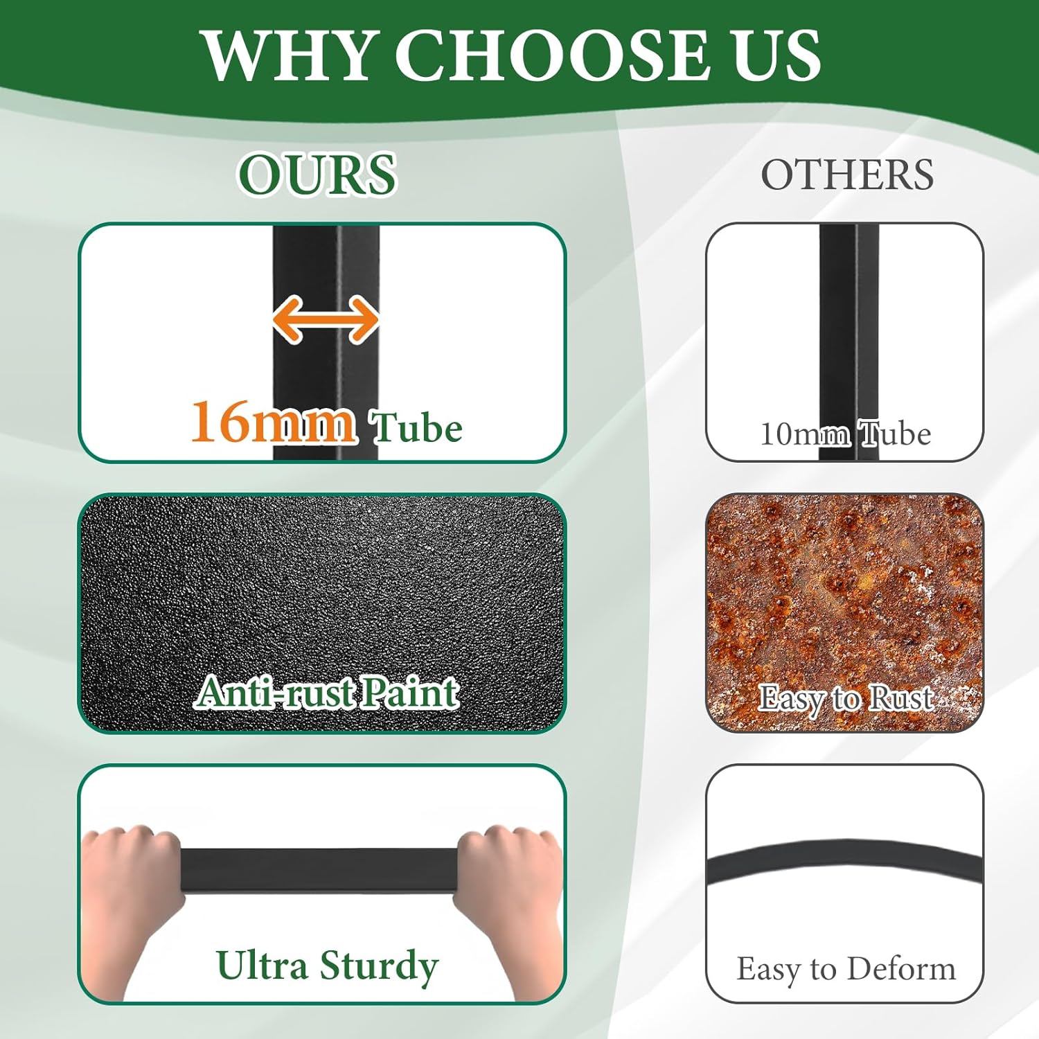 - Durable: Rustproof iron frame with powder coated finish lasts for years. Simply stake into the ground for fast and easy installation, The Long Nails add stable in the soil