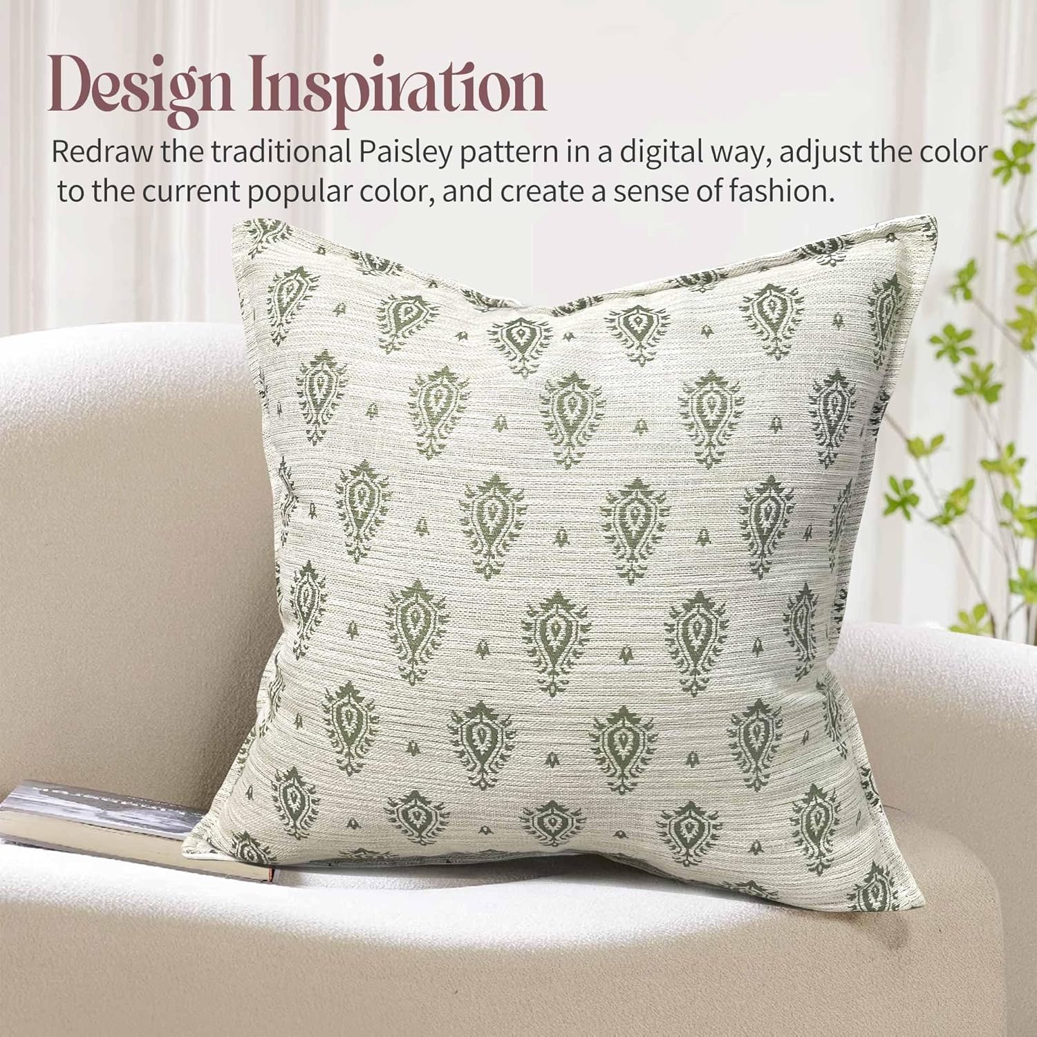 Floral Pillow Covers 18x18 Set of 2 Decorative Throw Pillow Covers Neutral Floral Paisley Farmhouse Pillow Covers for Sofa Couch Bed