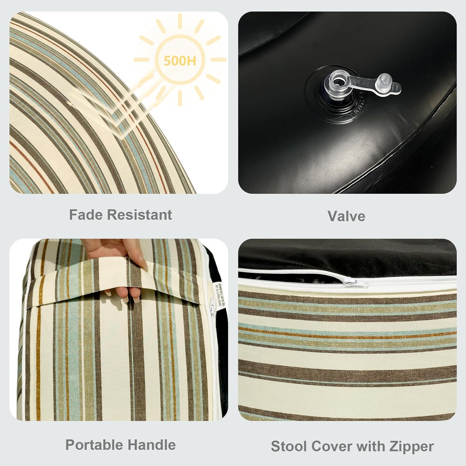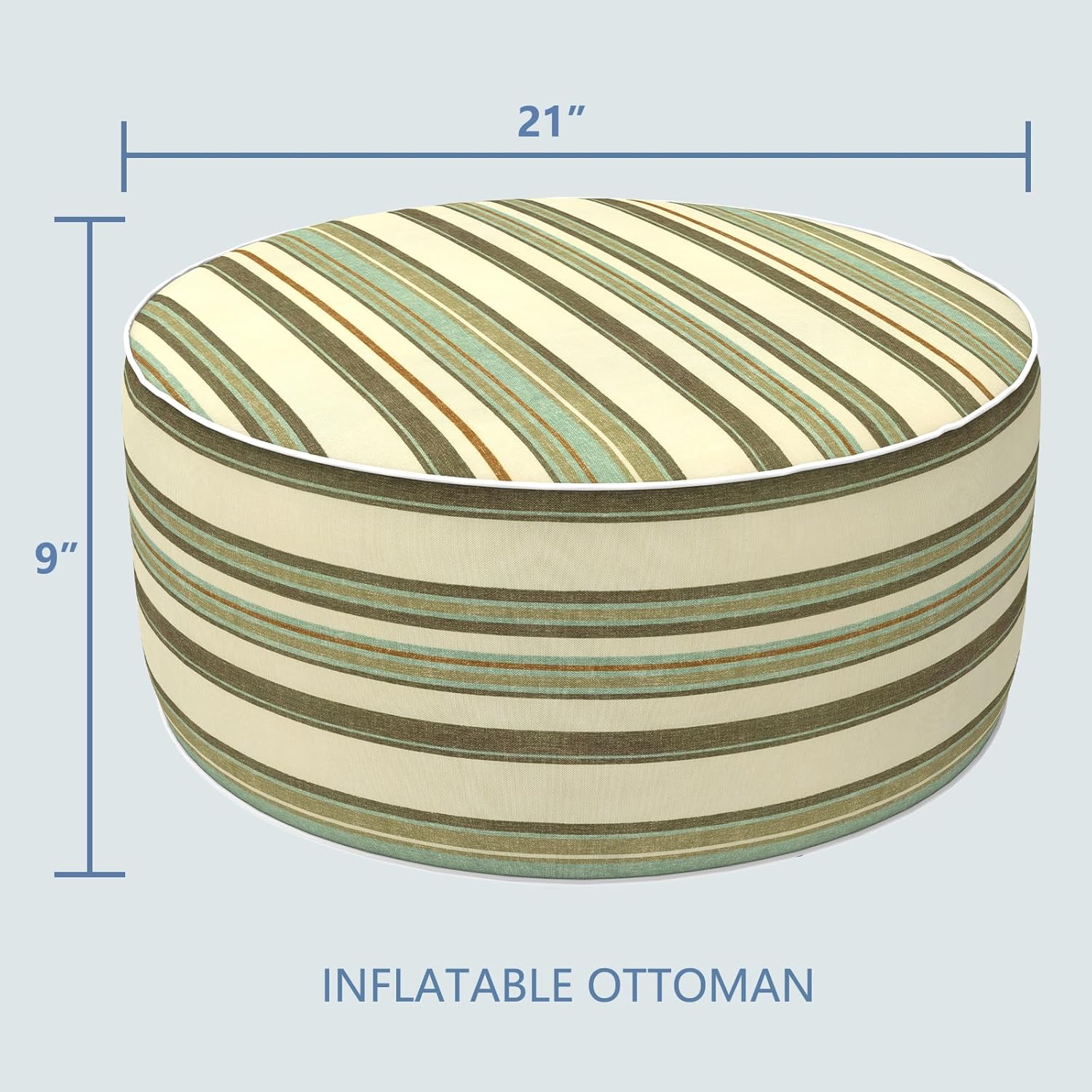 LVTXIII Inflatable Stool Ottoman Footrest with Handle, Decorative Fade-Resistant Foot Stool, Indoor or Outdoor Pouf for Home Garden and Camping Use, 21x21x9, Stripe Onyx