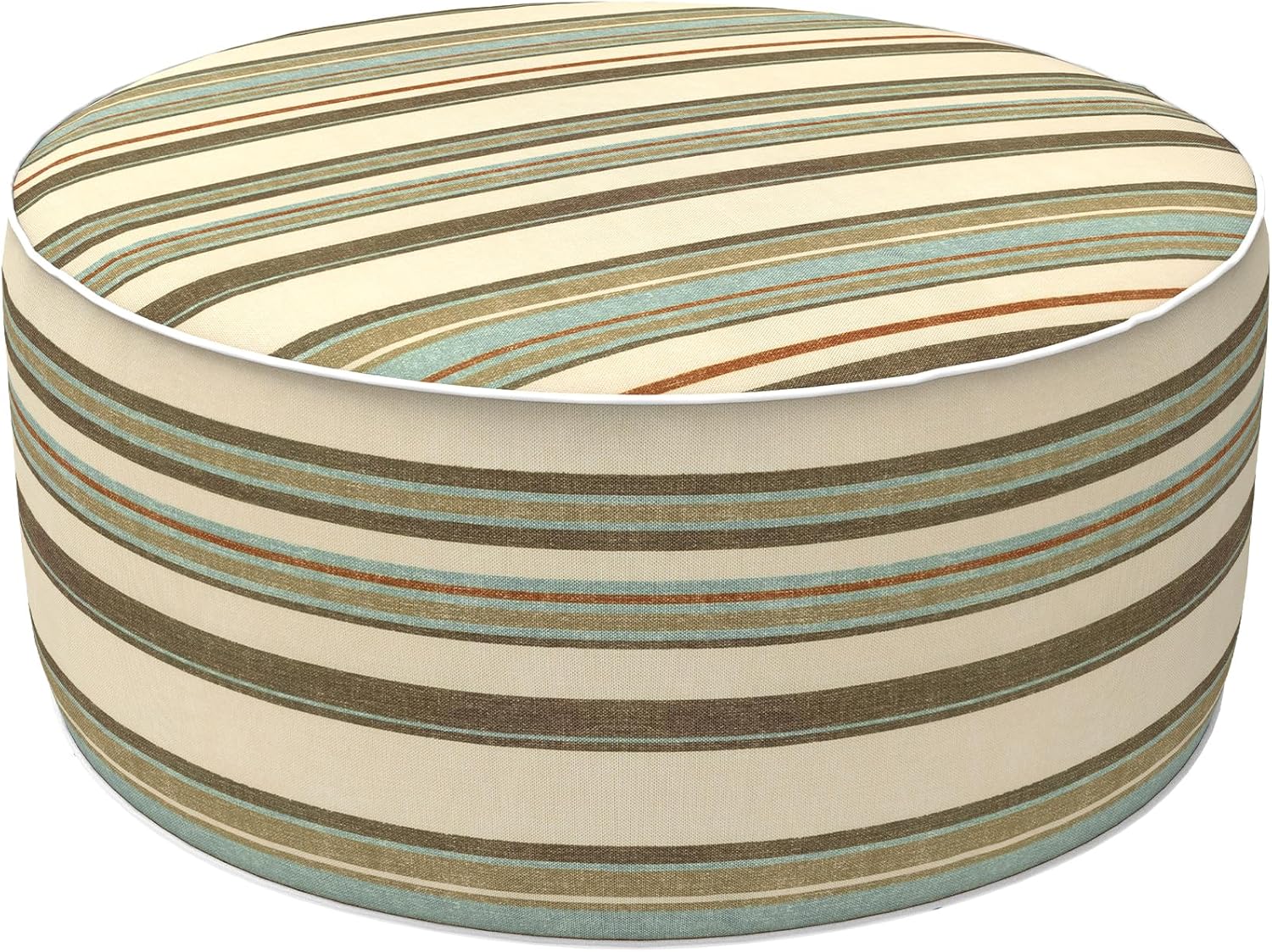 LVTXIII Outdoor Inflatable Ottoman, Fade-Resistant Round Footrest Stool D31”x H14”, Portable Patio Pouf for Garden Camping or Home Use, Stripe Onyx
