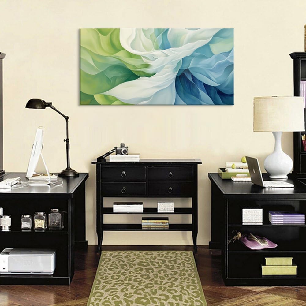 LASMOND Abstract Lines Wall Art for Living Room Canvas Prints Aqua Turquoise Blue Green Artwork Paintings Decor Bedroom Office Girl Woman (30x16 Inches)