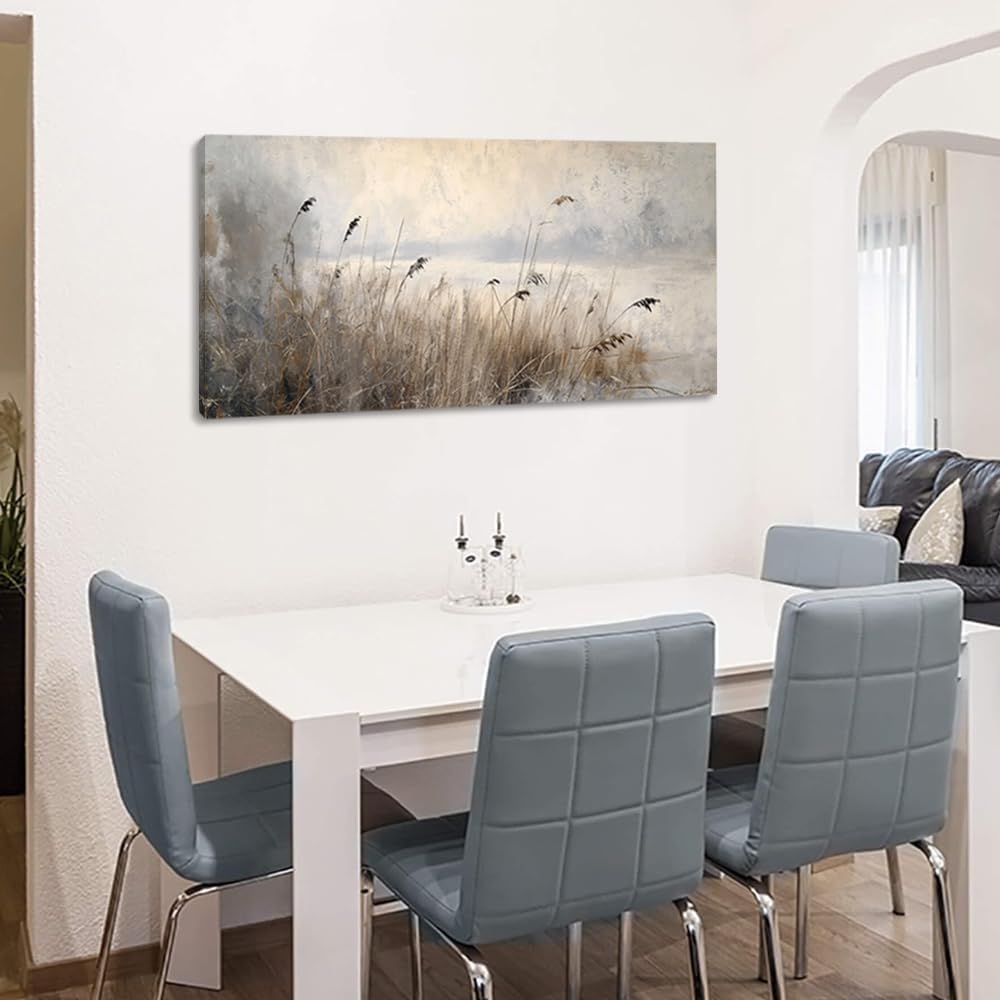 LASMOND Vintage Meadow Wall Art for Living Room Reed Grass Canvas Painting Prints Large Retro Rustic Cottagecore Countryside Landscape Farmhouse Bedroom Artwork Home Decor (40x20 Inches)