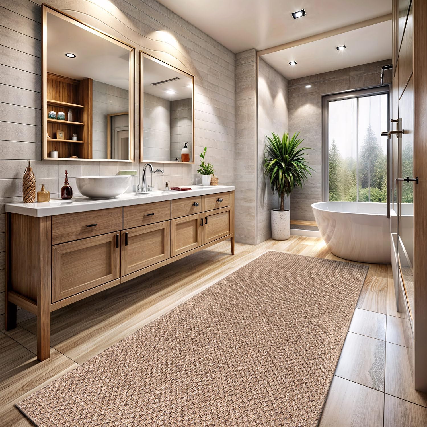 - [ EASY JUTE RUG ] Experience the enchantment of a resilient rug mimicking the appearance of natural jute, courtesy of our latest Easy-Jute rugs. (Jute-free in reality) Crafted from secure polypropylene, these rugs are resistant to cracking, ensuring they remain free from scratches, shedding, or unraveling over time.