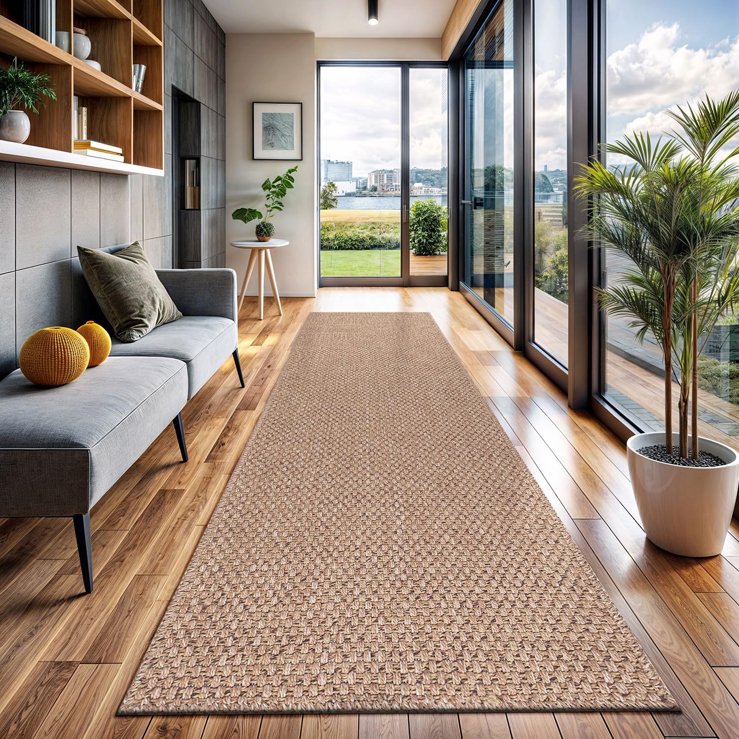 CAMILSON Indoor and Outdoor Runner Rug Natural Solid Boho Woven Design Easy-Cleaning Non Shedding Farmhouse Living Room Bedroom Garden Patio and Kitchen Washable Outside Carpet Alfombras (2x7)