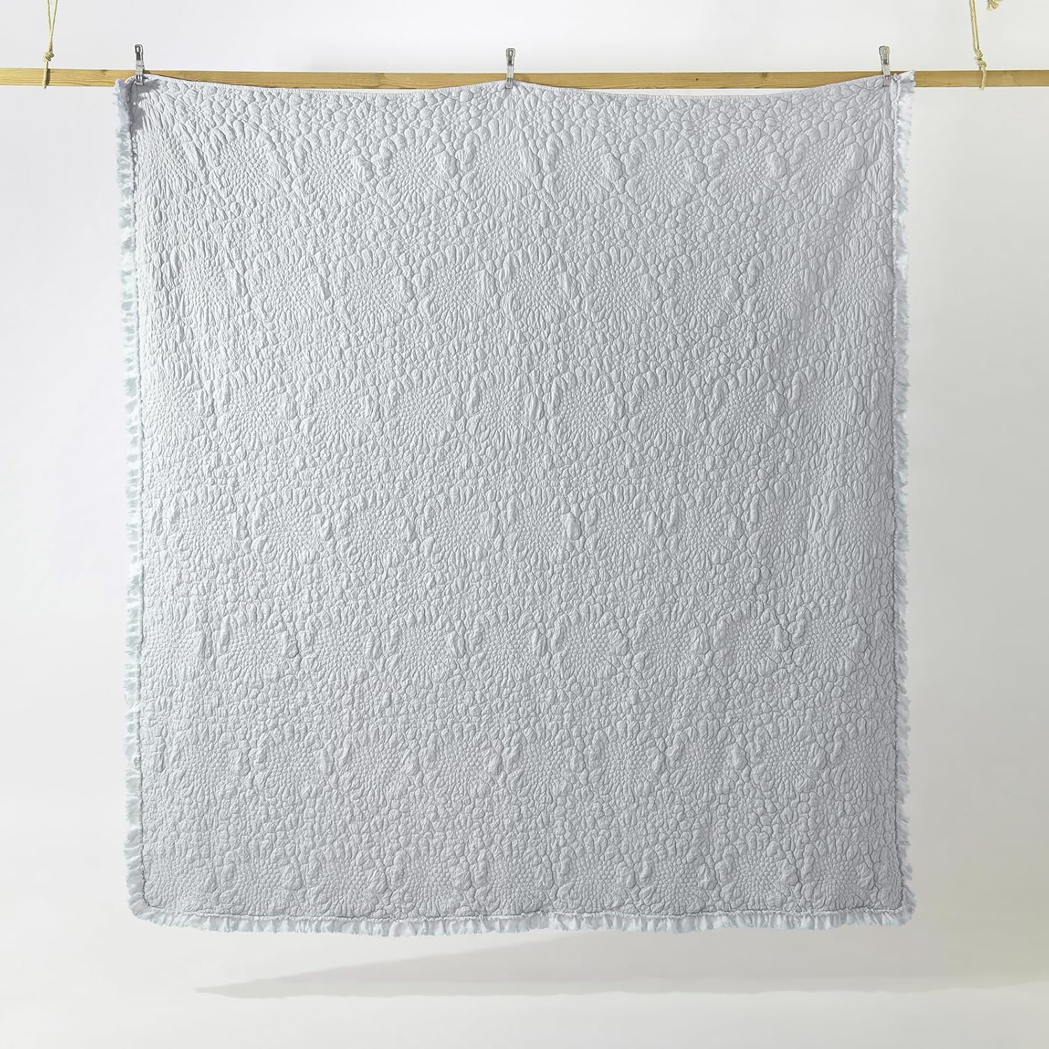 HORIMOTE HOME Light Blue Ruffled Quilt Twin Size, Stone-Washed Microfiber Lightweight Crinkled Farmhouse Rustic Shabby Chic Bedding Set, 2 Pieces Reversible Bedspread with Pillow Sham for All Season