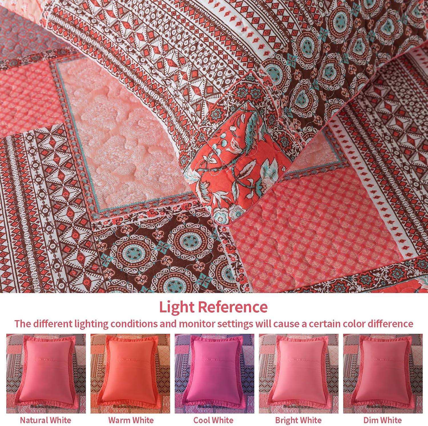 - 【High Quality Fabric】The cotton pink king quilt bedding set is made of high-quality cotton material, which is skin friendly and breathable. The comfortable fabric allows you to sleep well all night. The cover and fabric are both lightweight, giving this quilt set a cloud like soft touch and further improving your sleep quality.