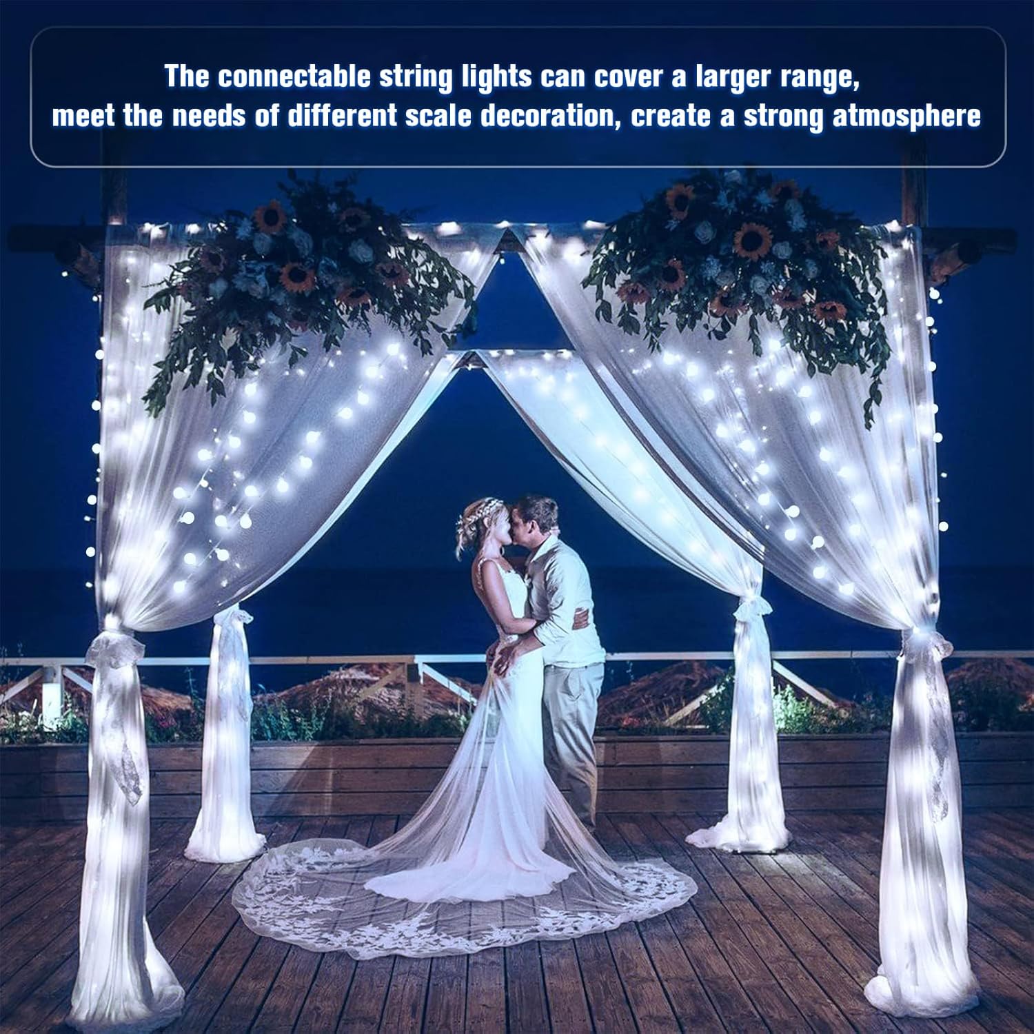 - Ultra Long globe string lights: Now offers the ultra length fairy lights 165ft for outdoor/indoor decoration, The length of 200 LED indoor and outdoor decorations lights is 116ft (100ft String Lights,16ft Lead Wire). Also the decorative string lights are connectable, can meet your more decoration needs, presenting more beautiful lighting displays. Super long globe string lights to decorate your home,classroom,dorm,bistro,cafe,shopping mall,wedding,party,yard,garden,Christmas decorations, etc