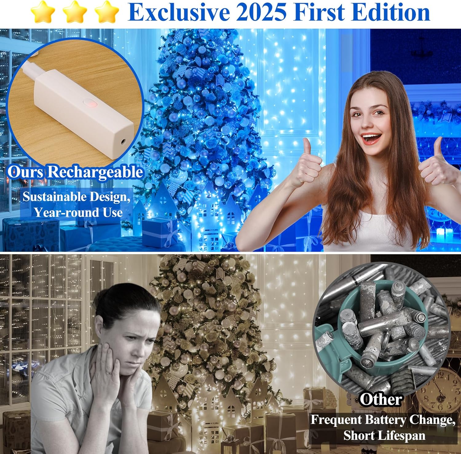 - 2025 Specially Developed Battery Operated String Lights: Say goodbye to disposable batteries and embrace sustainability! Our rechargeable Type-C power bank (cable included) powers the twinkle lights for 30+ hours of cordless glow. When it’s time to recharge, simply detach the compact, lipstick-sized power bank—no need to move the entire string lights. Designed with an innovative, patented structure, this power bank offers a smarter, greener way to shine
