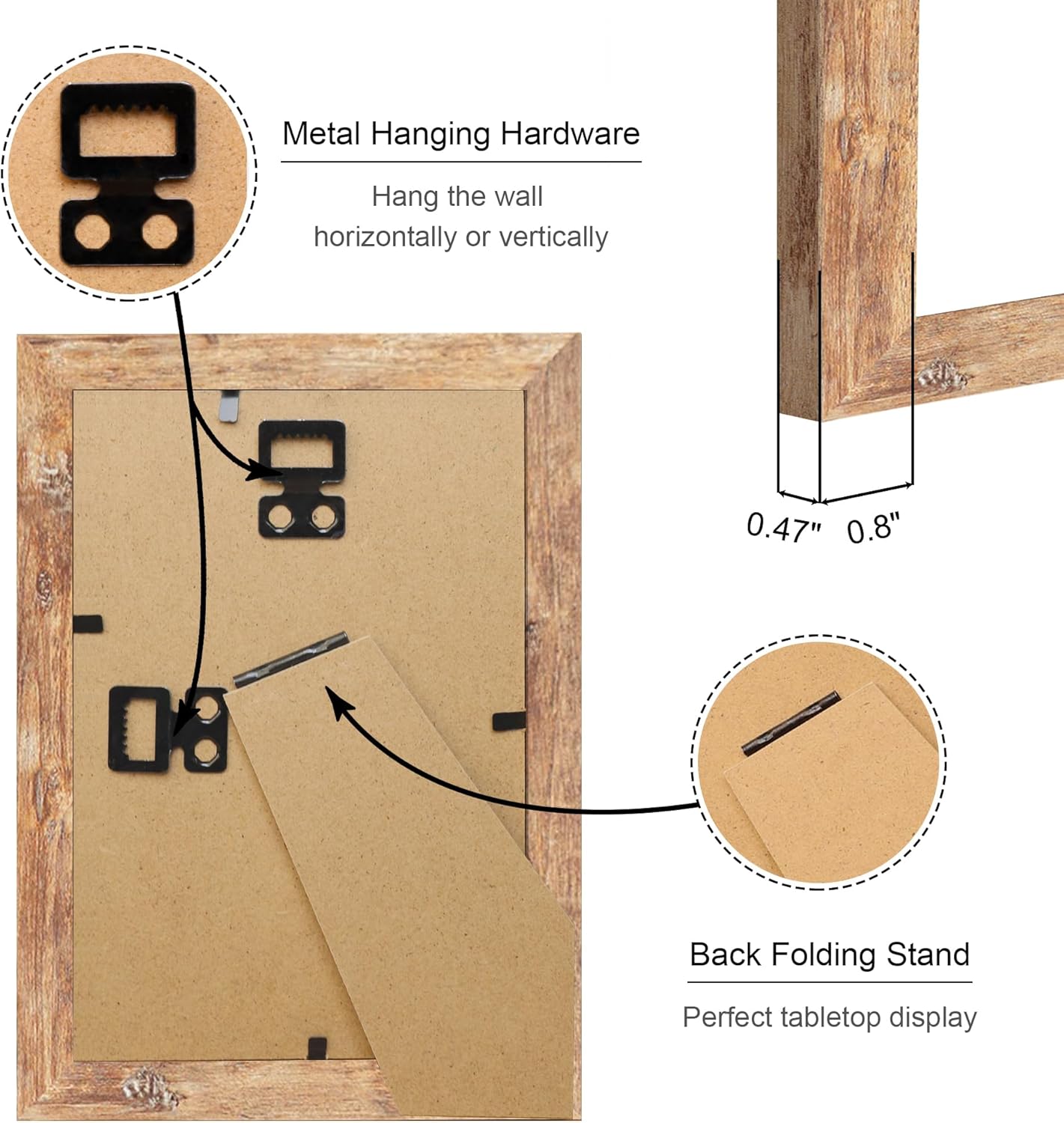 - Multiple Display:4 by 6 photo frames come with hanging hardware, which can be hung horizontally or vertically on the wall, or displayed on the tabletop through the stand