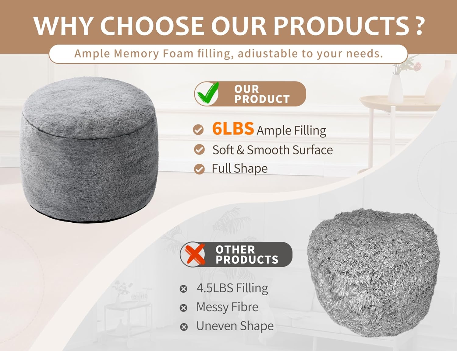 - Storage Pouf Ottoman:The filling of the bean bag footstool is about 6.83 lbs, if you think the pouf seat is not sturdy enough and full of filling, please open the zip at the bottom of the living room foot rest and put in stuffed dolls, winter coats, memory foam, blankets and other items, which will help to save space.