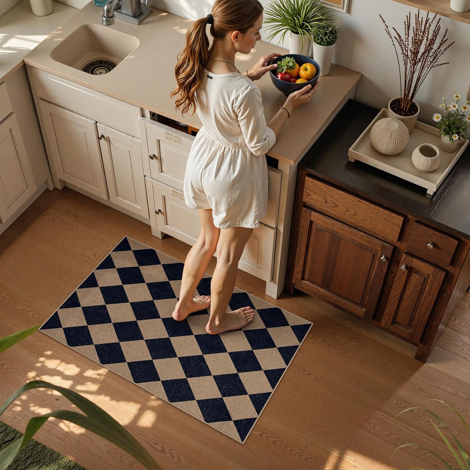 - Functional Rug: Checkered rug lends a sense of simplicity and comfort to your kitchen, entryway, front door, bedroom, foyer or more indoor/outdoor rooms, creating a warm appearance