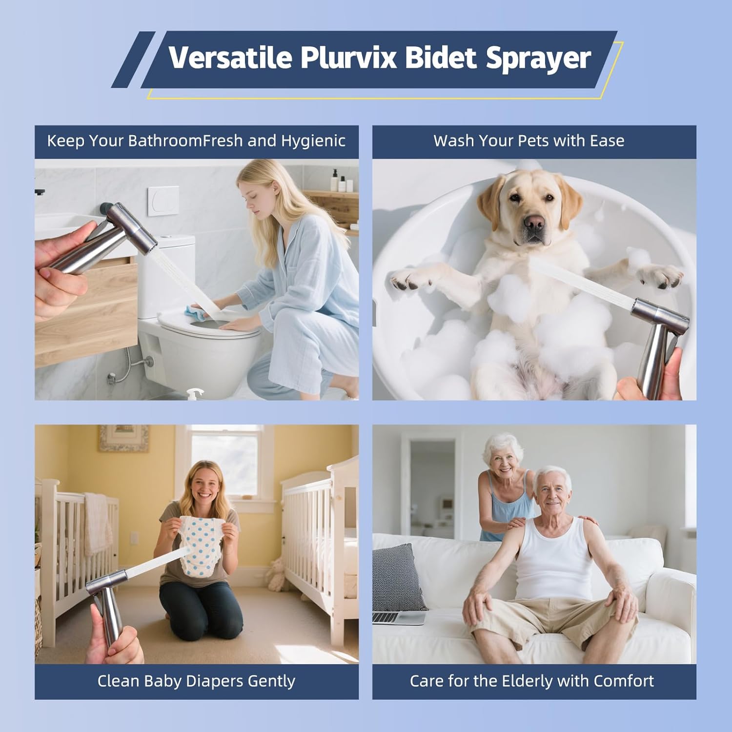 - Versatile Bidet Sprayer - This handheld spray hose is not only designed for personal cleansing but also provides gentle and thorough cleaning for women during pregnancy and menstrual cycles. Additionally, it serves as a diaper sprayer, toilet cleaner, bedpan washer, and even a convenient pet shower.
