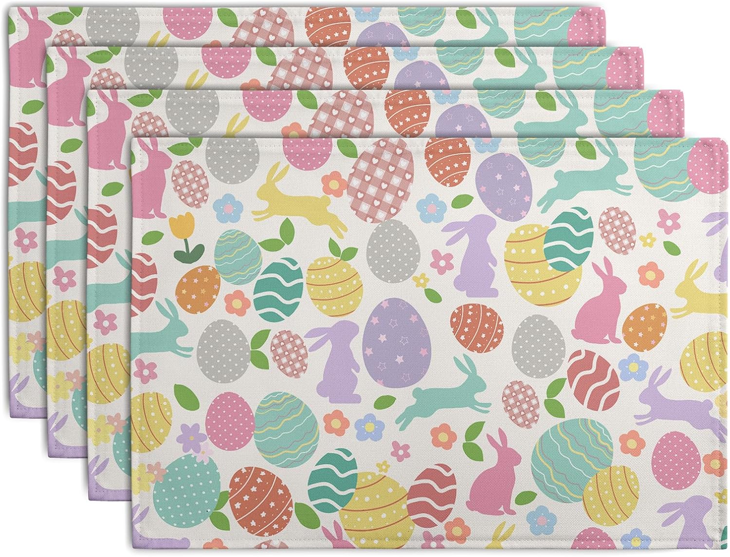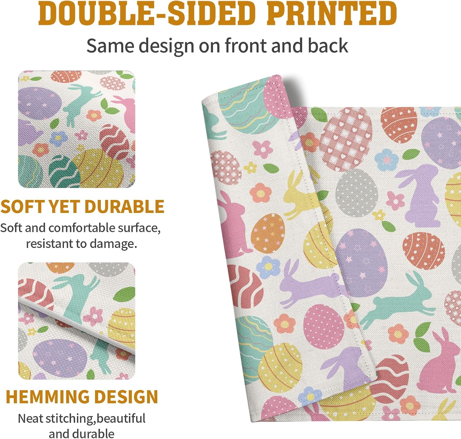 - PERFECTLY SIZE: The easter eggs placemats set of 4, Each easter dinner placemats is 12x18 inch (30 cmx45 cm) that can exactly fits your needs to use in all kinds of situations