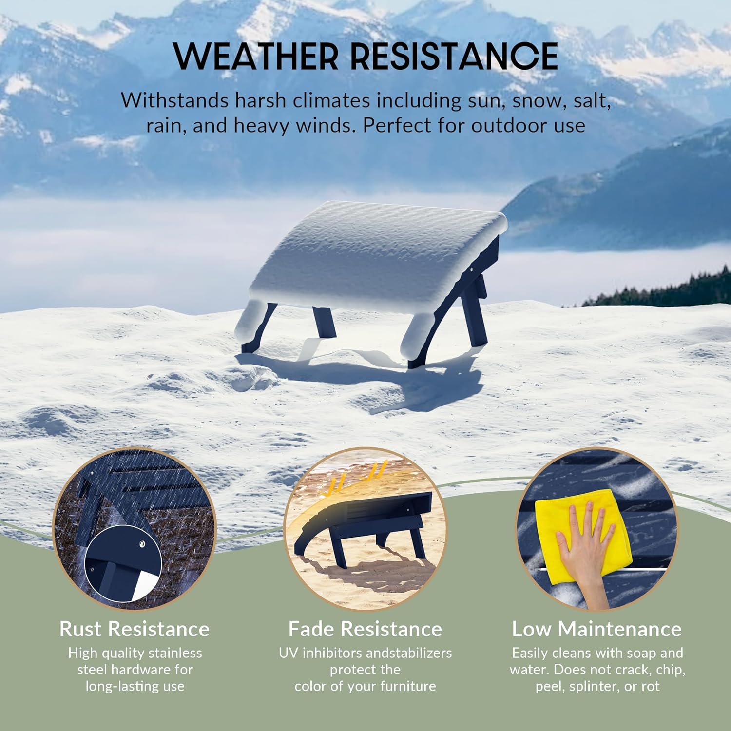 - All Weather Resistant: This Adirondack foot rest are made of HDPE plastic, its weather resistant and UV fade resistant material can withstand in various enviromental pressure and not easy to dent, crack , peel or rot as wood.