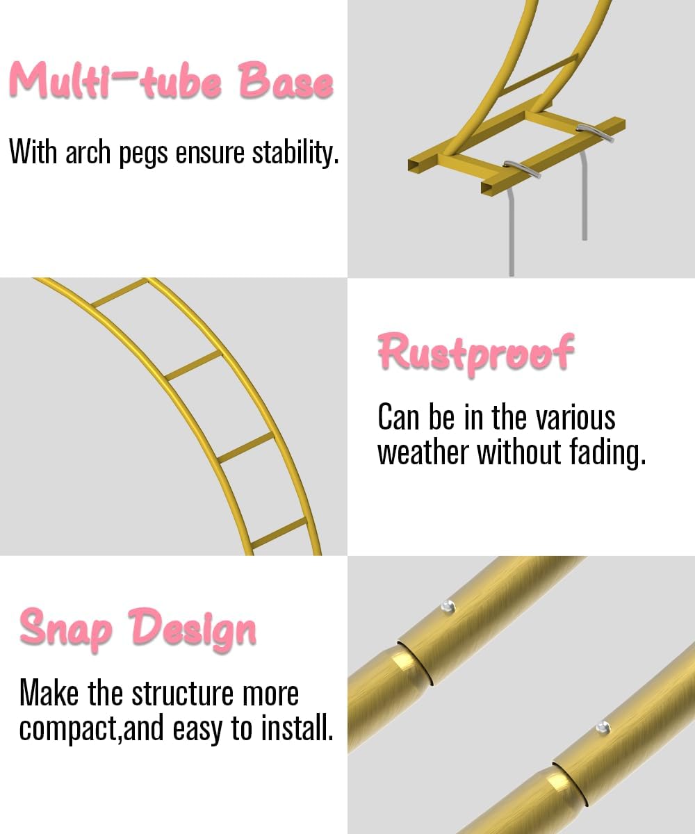 - Double-Tubes Construction: This garden arch features a robust double-tube structure with a sturdy base, ensuring exceptional stability and balance. The snap design contributes to a more compact and durable construction, making it suitable for both indoor and outdoor applications.