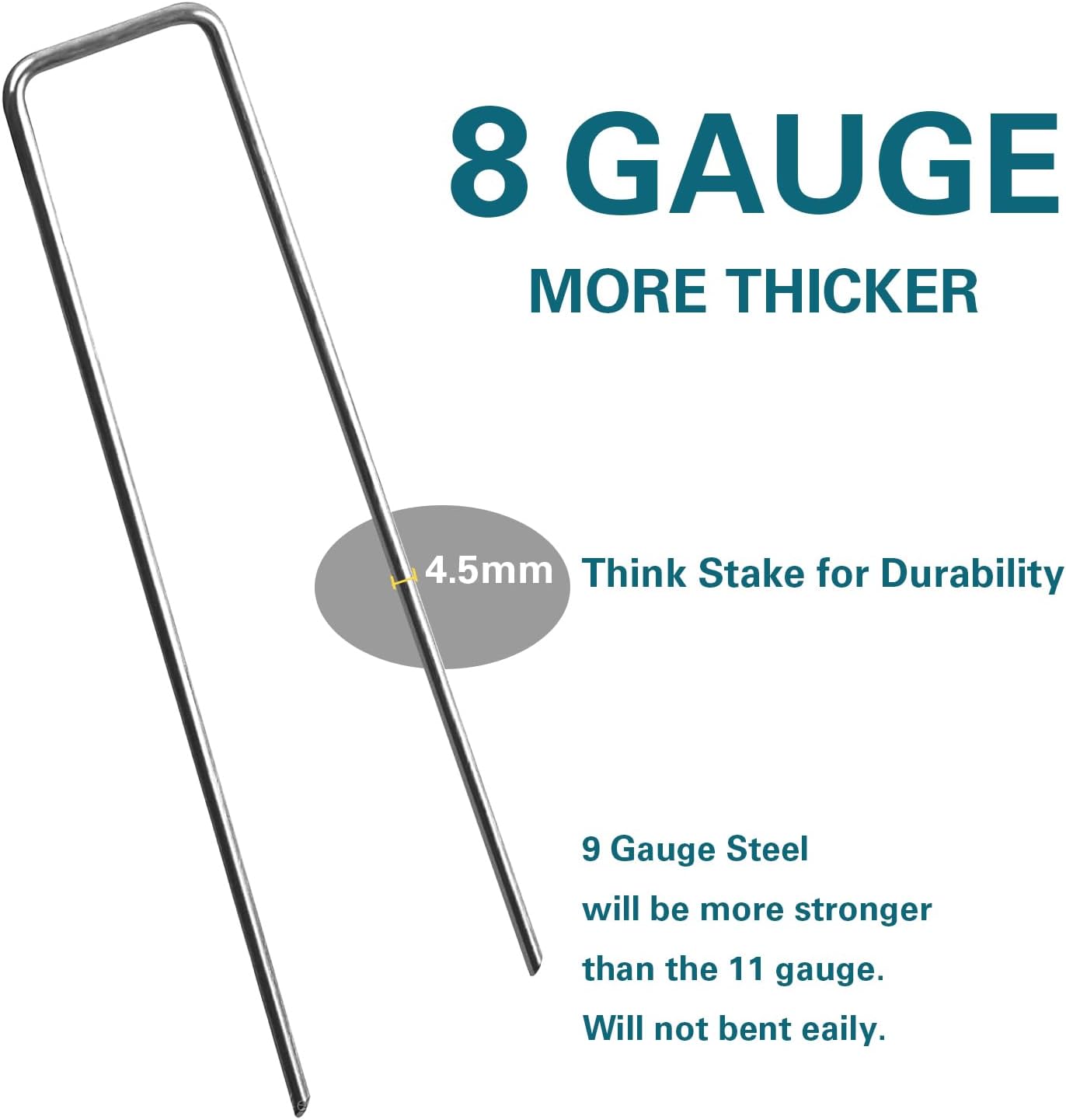 8 Inch Landscape Staples, More Thicker Heavy Duty 8 Gauge Galvanized Landscape Stakes, 125 Packs Garden Staples for Lawns, Weed Barriers, and Landscape Fabrics, Irrigation Hose, Tent Pegs
