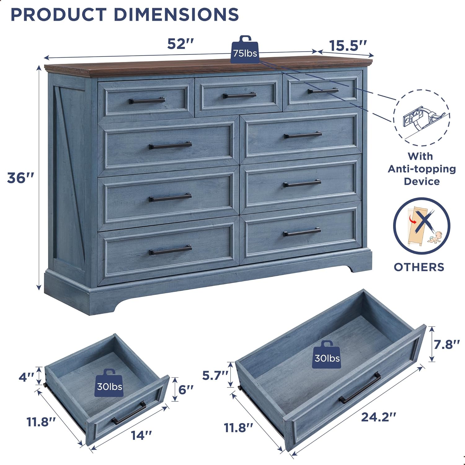 - STURY SUPPORT & ANTI-TOPPING: As a stunning storage furnishing outfitted several drawers, it features a stable base and the extra hidden reinforced protection under the base for a long-term use. There are also anti-topping device on the back panel to prevent it from topping over, adding better safety in your home