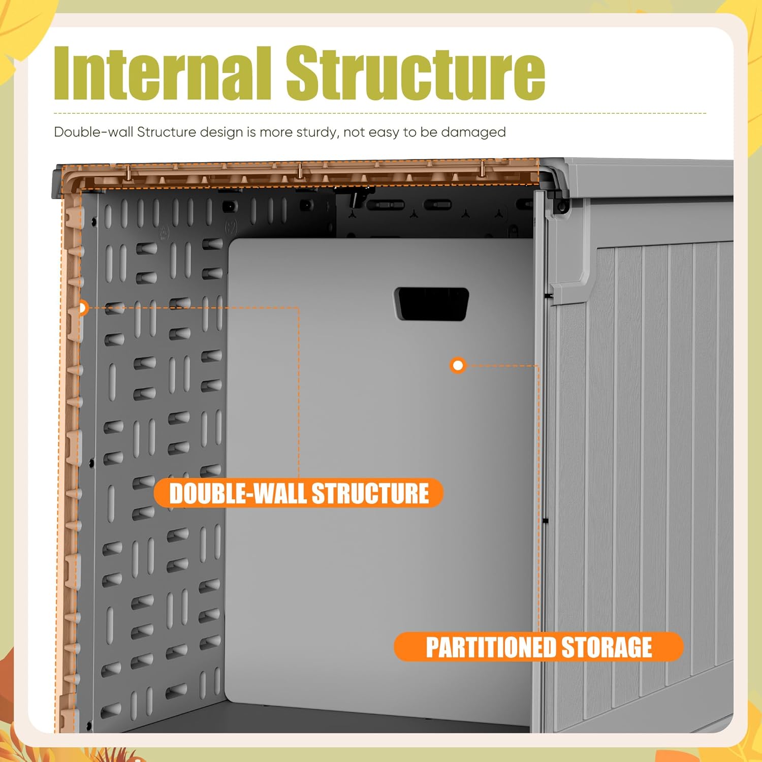 - Partitioned Storage: The Deck Storage Box has a 240-gallon capacity for storing anything you need, and with the partitioned storage design you can choose left or right side for partitioned storage as needed, making it easier to access your items
