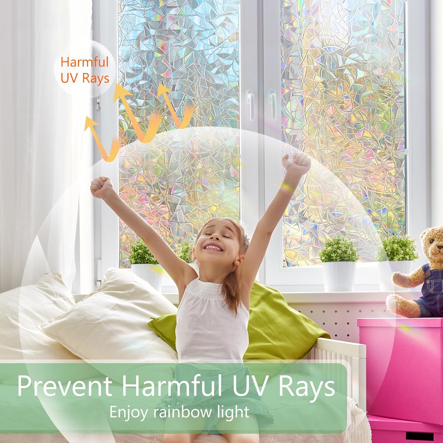 HIDBEA Window Privacy Film Static Clings, Rainbow Window Film, 3D Decals Non-Adhesive Window Vinyl Film for Home Door, 35.4 Inch × 6.5 Feet