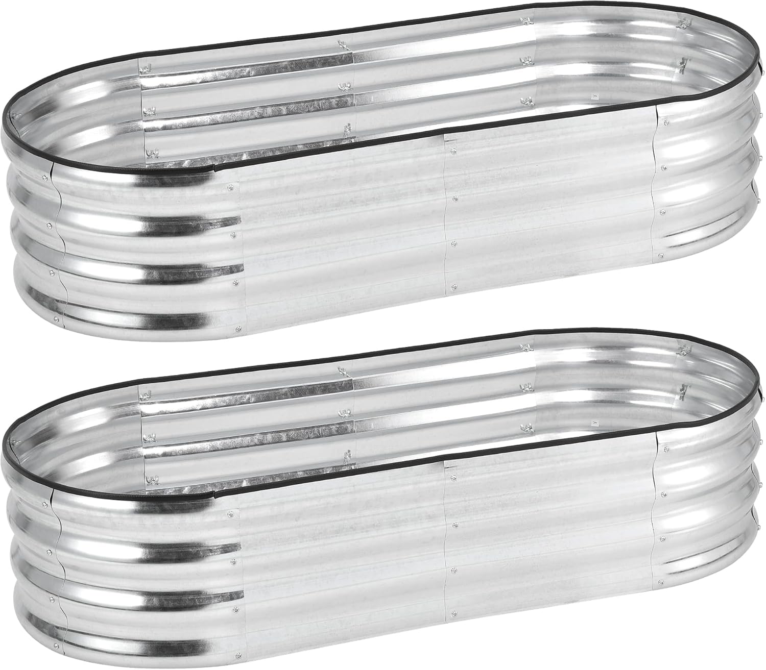 2 Pcs 4.5x2x1ft Oval Raised Garden Bed, Galvanized Raised Beds,Open-Ended Base Metal Raised Planter Beds,Planter Raised Boxes for Vegetables, Flowers,Tool-Free Asse,Rubber Edge