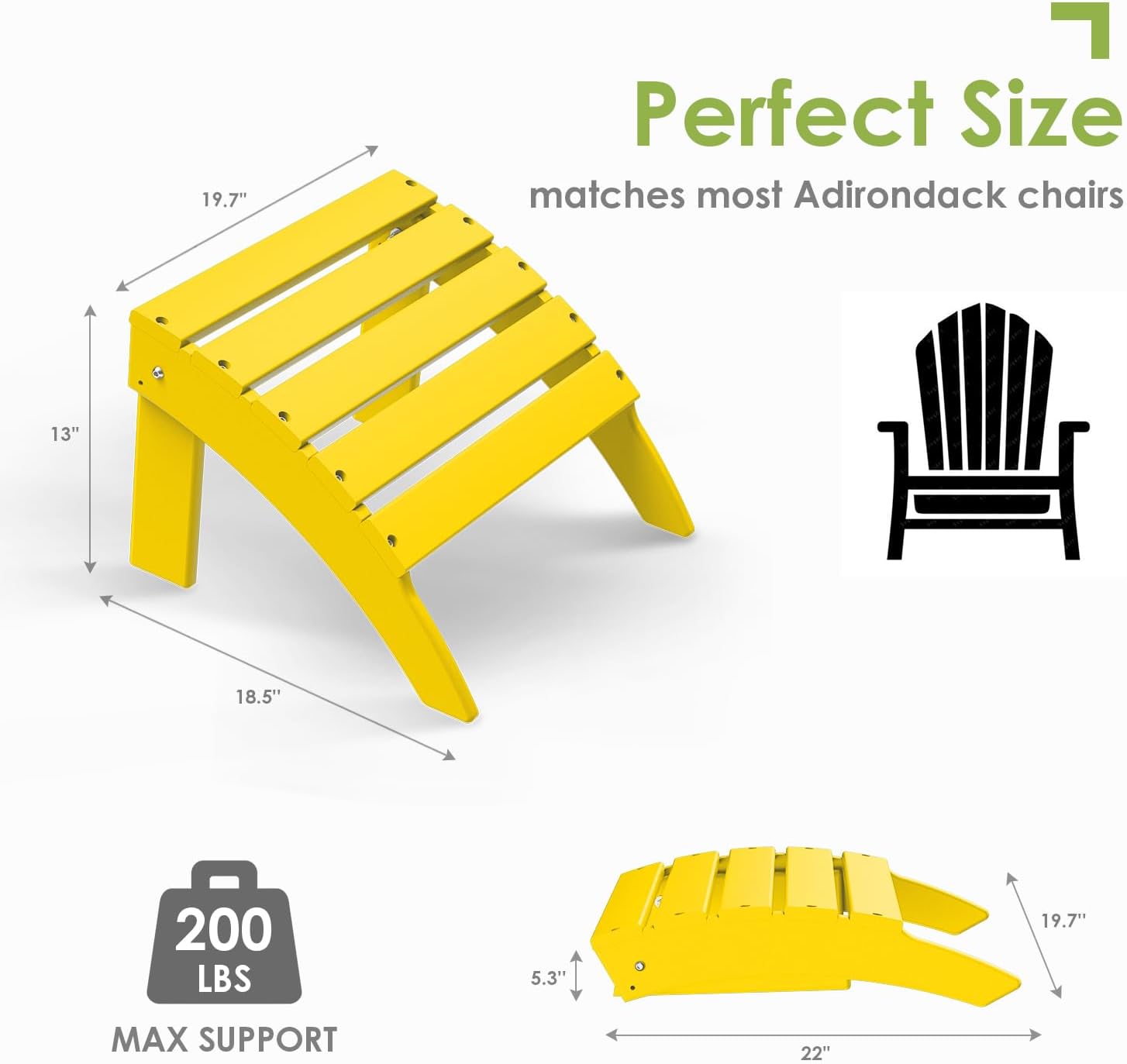 GREENVINES Adirondack-Ottoman | Set of 4 | HDPE Plastic | Outdoor Footrest | All Weather | Foot Rest | Foot Stool | Yellow | for Adirondack Chair | for Patio Backyard Pool
