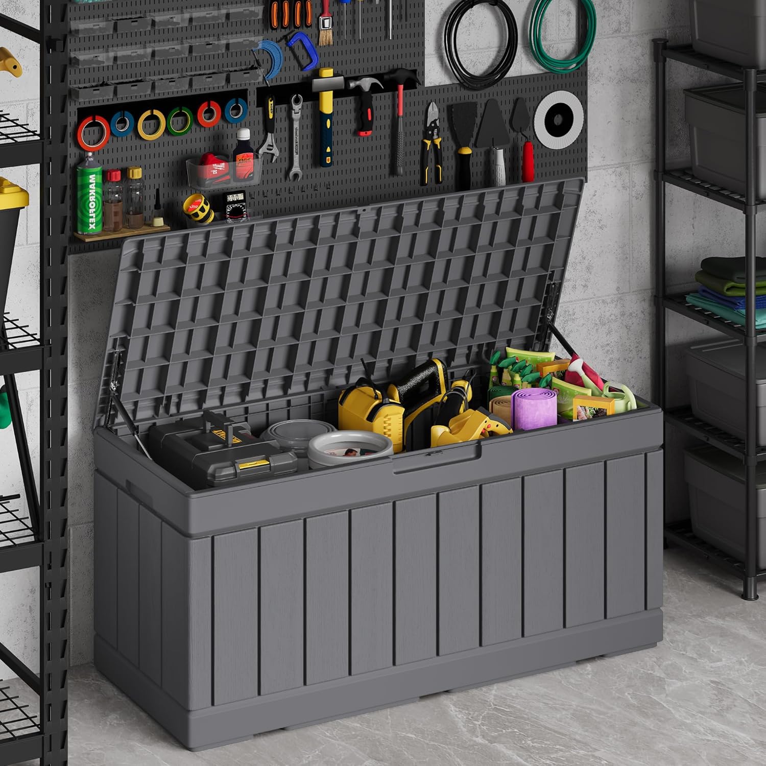 Devoko 80 Gallon Deck Box, Waterproof Resin Outdoor Storage Box for Outside and Patio, Outdoor Storage Bench Lockable for Patio Furniture, Garden Tools and Pool Supplies (Grey, 80 Gallon)