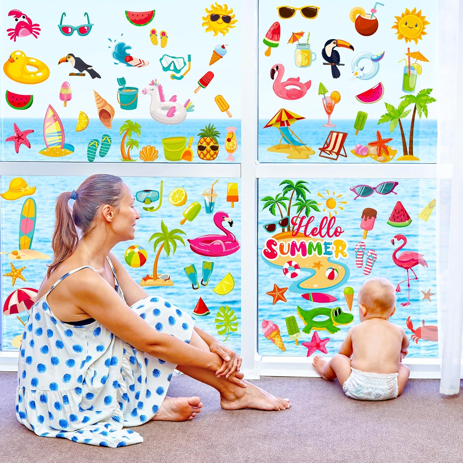 - Wide Occasions: These summer decorations can be applied to most smooth surfaces, including wooden furniture, floors, tiles, mirrors, glass, windows, showcases, and store or restaurant windows.