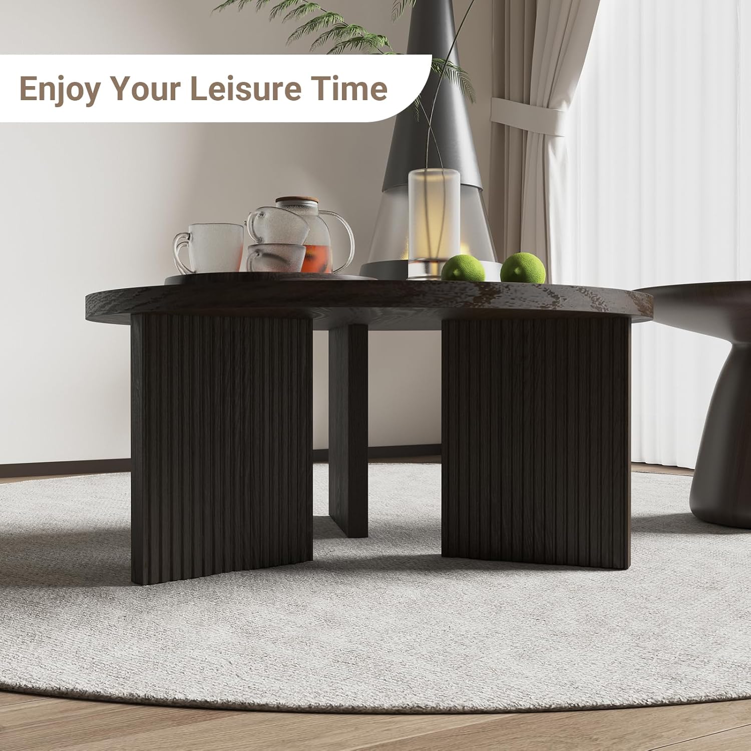 - Sturdy Wooden Coffee Table: Our classic round coffee table boasts a high-quality wood grain veneer finish that imitates the natural beauty and texture of walnut. The waterproof and wear-resistant multi-step finish process protects the wood grain veneer while ensuring it remains looking sleek over time. The simple yet attractive design creates a classic look, whether minimalist or luxurious.