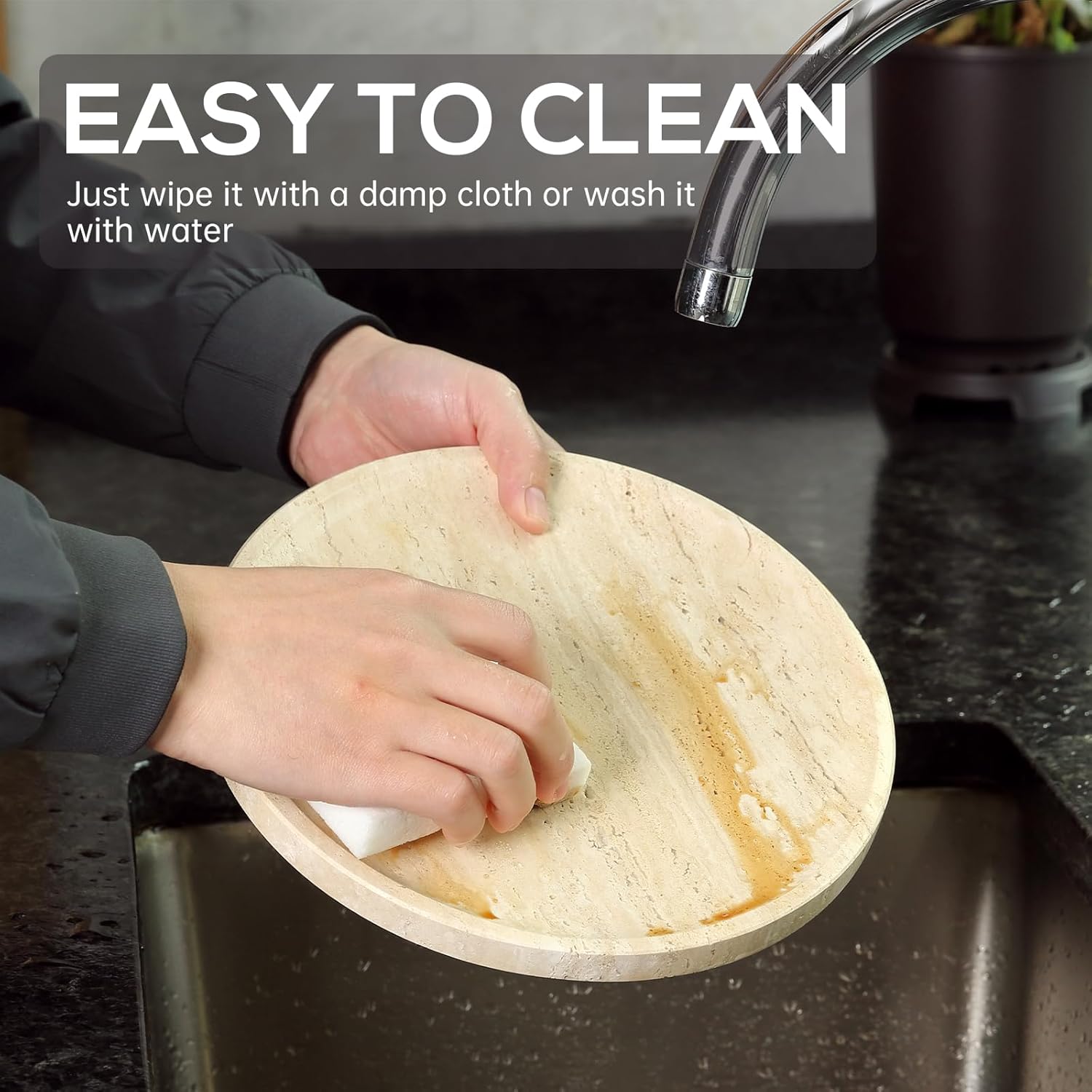 - Suitable Size: Our small round marble tray measures 9.8" in diameter and 0.7" thick. This catchall tray fits bathroom washstands, kitchen counters, coffee tables, bedroom dressers, vanity tops, and bedside tablesโideal for organizing and enhancing your space
