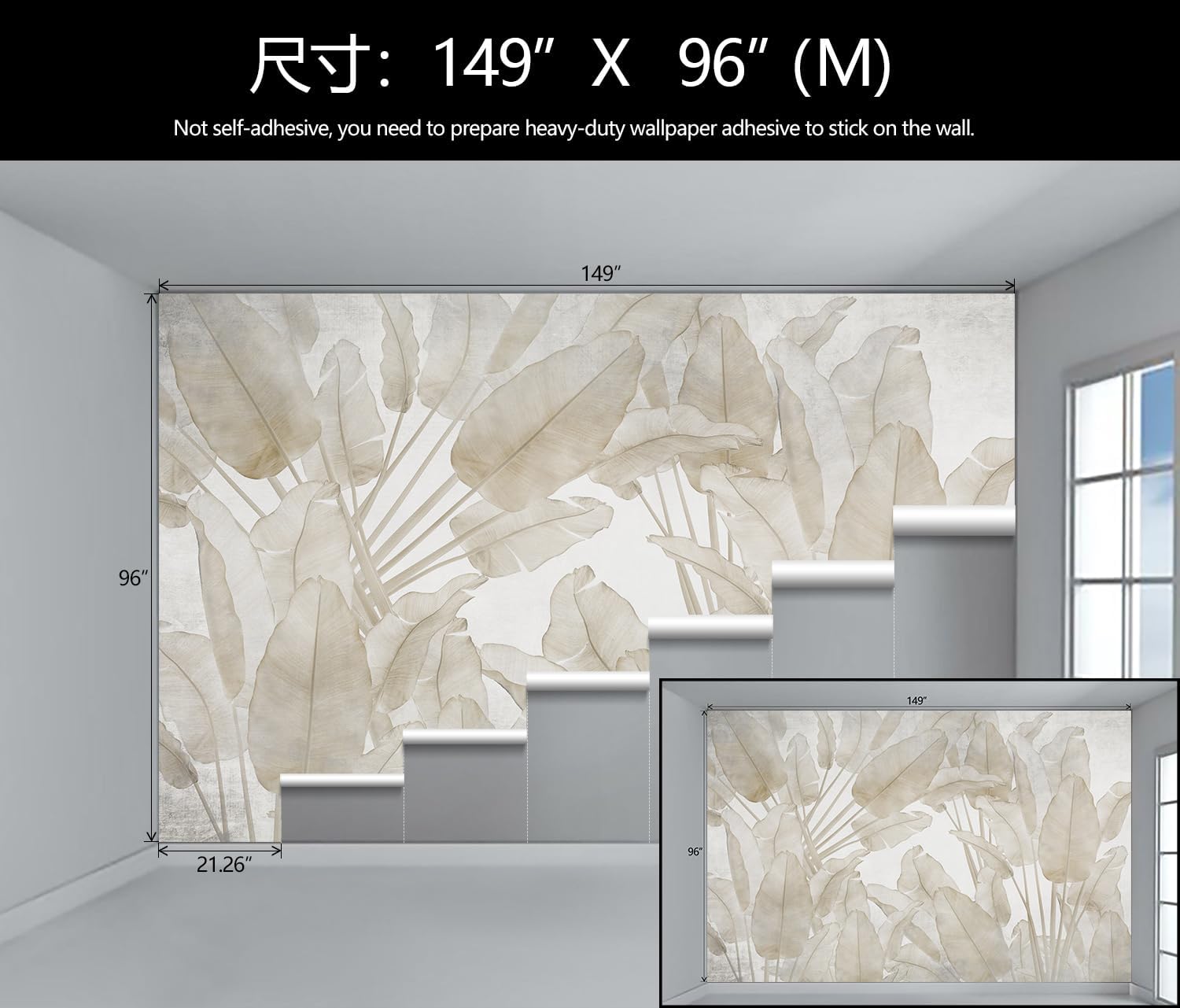 Banana Leaf Wallpaper Beige Tropical Plants Leaves Wall Mural Living Room Bedroom (Not Peel and Stick)