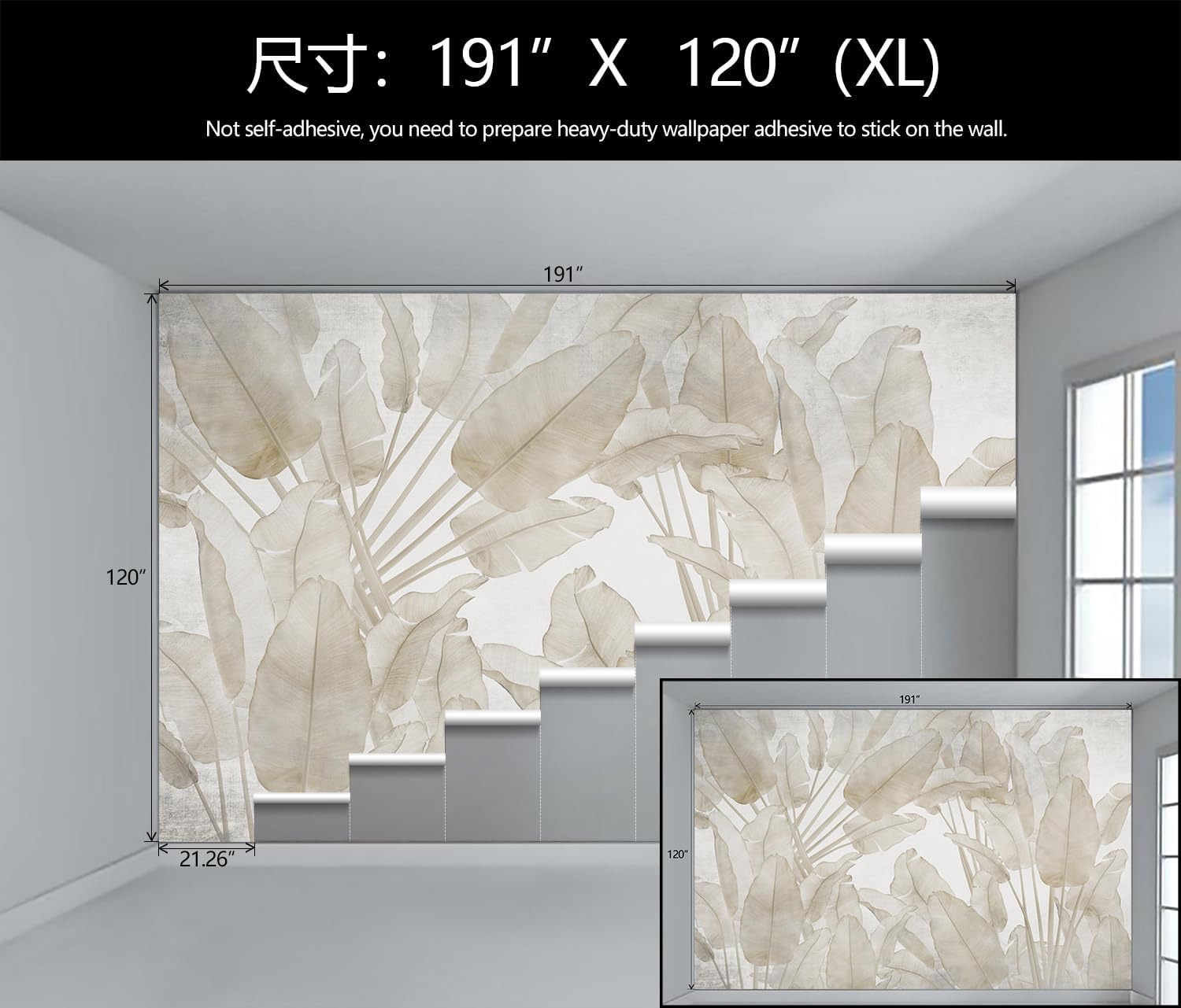 Banana Leaf Wallpaper Beige Tropical Plants Leaves Wall Mural Living Room Bedroom (Not Peel and Stick)