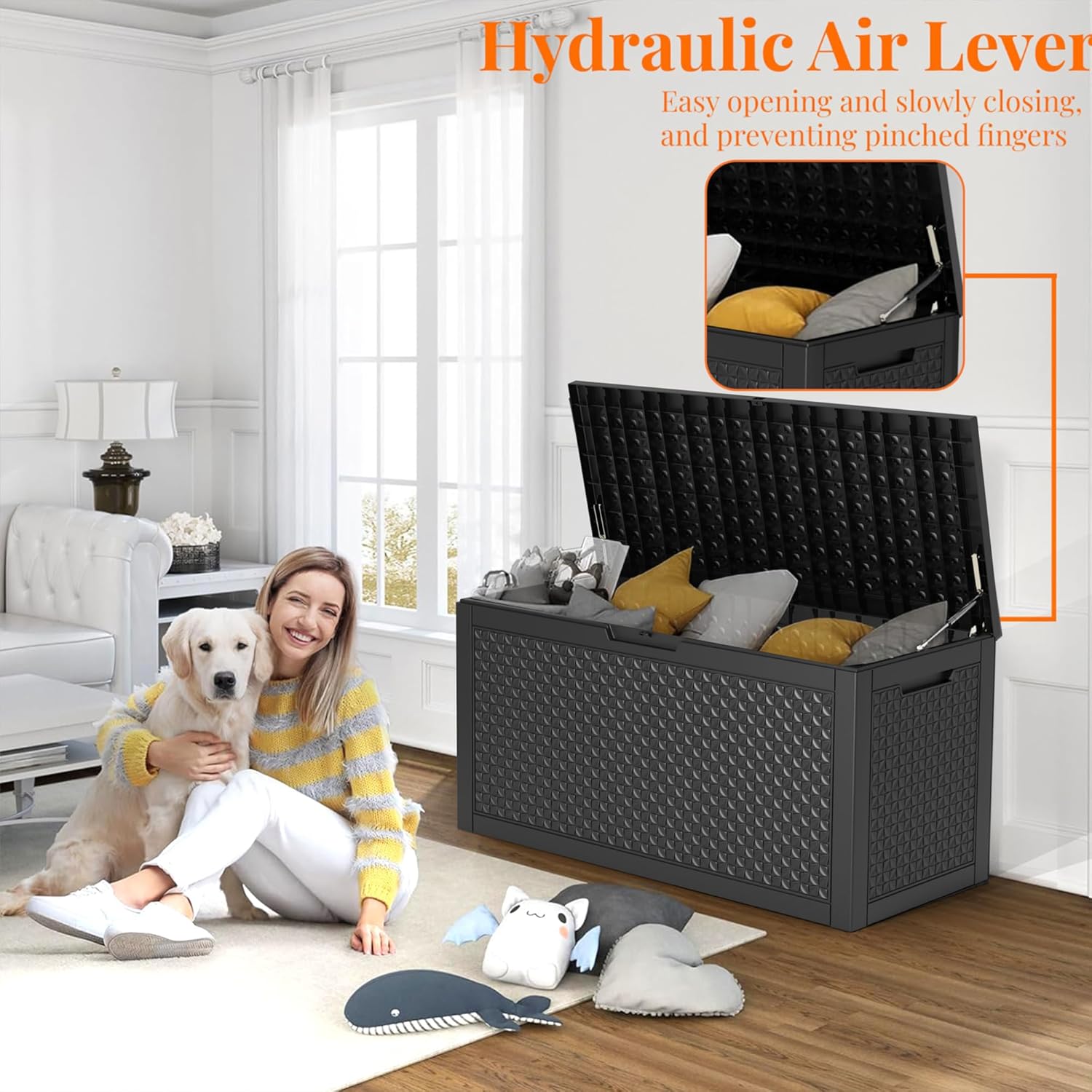 Vixzen 100 Gallon Waterproof Deck Box – Outdoor Storage Organizer for Patio & Garden,Black Pattern